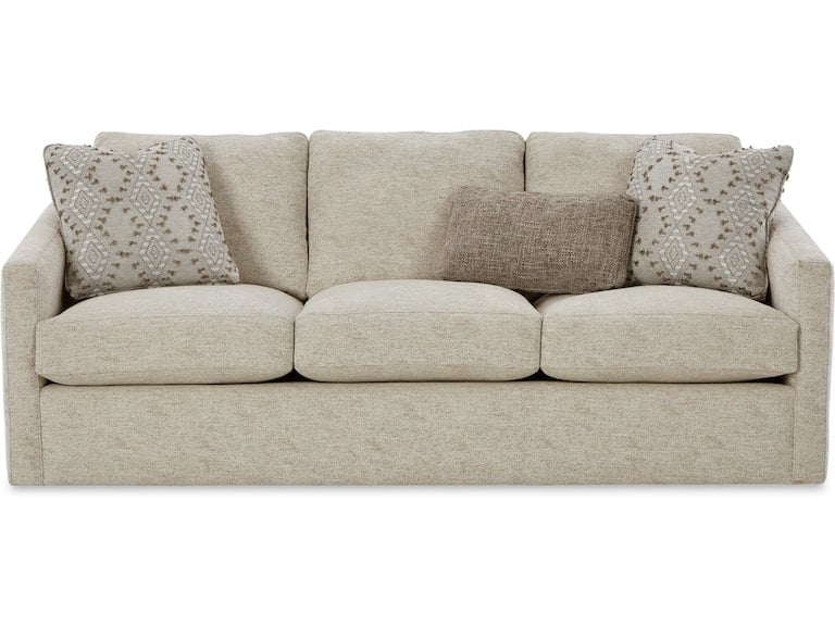 Make a statement with this chic and curvy style from our CM Modern collection. It features a high sloping track arm that wraps into a beautiful curve around the back, catching your eye from every angle. French seamed all over to give a clean and modern aesthetic, this piece has loose box border back pillows and plush Blend Down seat cushioning. Also available are the matching loveseat, chair, swivel chair, ottoman and sectional.