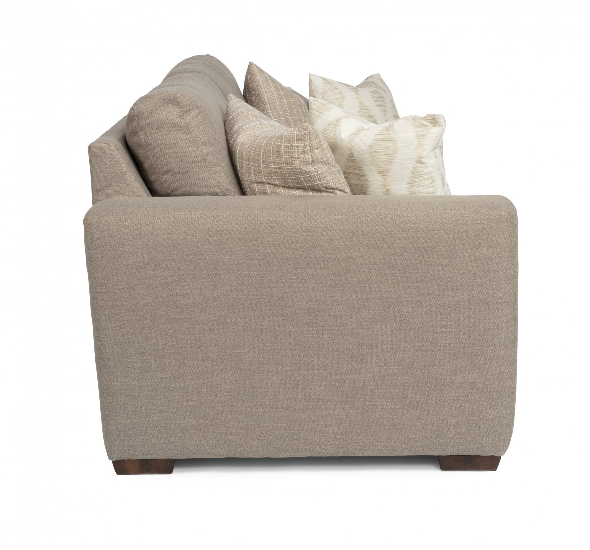 Collins’ overstuffed back cushions and comfortable plush seat cushions radiate an inviting design that begs you to sit and stay awhile. Its broad arms and bold block legs enhance Collins’ square frame and traditional style.