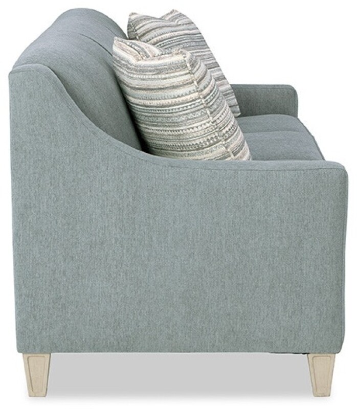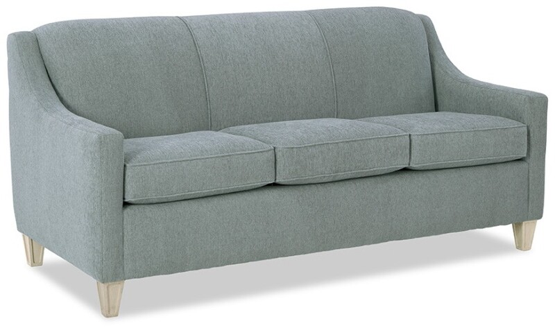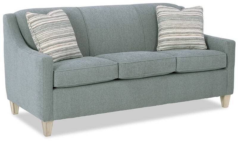 A charming and classic piece, this sofa is perfect for smaller spaces- at only 74″ long. Small in scale, but big on comfort, it features a plush tight back and soft seat as well as two toss pillows. Gently sloping track arms and window pane leg details give this sofa the style and character you will love. Also available are the matching loveseat, chair, ottoman, and queen sleeper sofa.