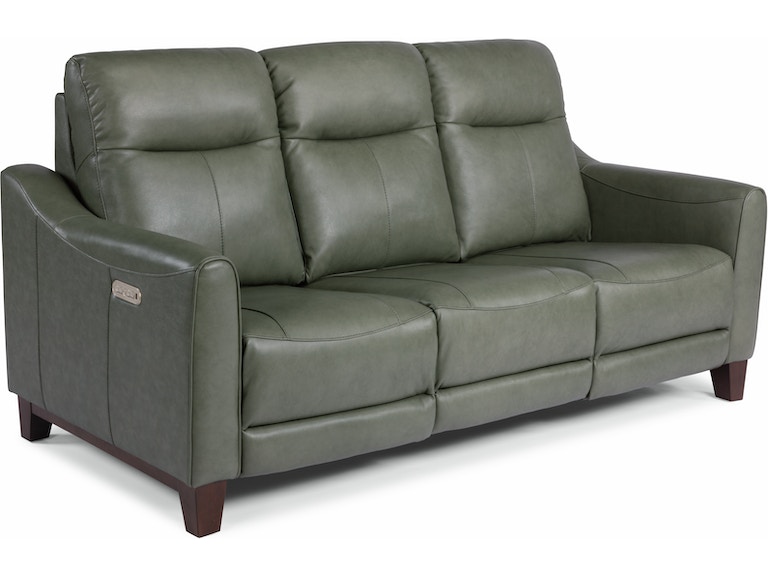 Anchor your living space in supportive style with the Forte Power Reclining Sofa with Power Headrests. Using power controls that independently adjust the headrests and recline, those sitting on either end can put their feet up while watching TV. USB charging ports built into the controls provide convenient access to power for your devices, so you can stream movies for hours at a time. With tapered wood legs that sit higher off the ground and saddle-stitched soft track arms, the Forte sofa has an elevated stationary aesthetic that will enhance your home decor. Even if you have a rambunctious family, this sofa will stay comfortable for years to come with Flexsteel DualFlex Spring Systemâ„¢. Choose from two colors of our premium leather options to achieve the perfect look for your space.