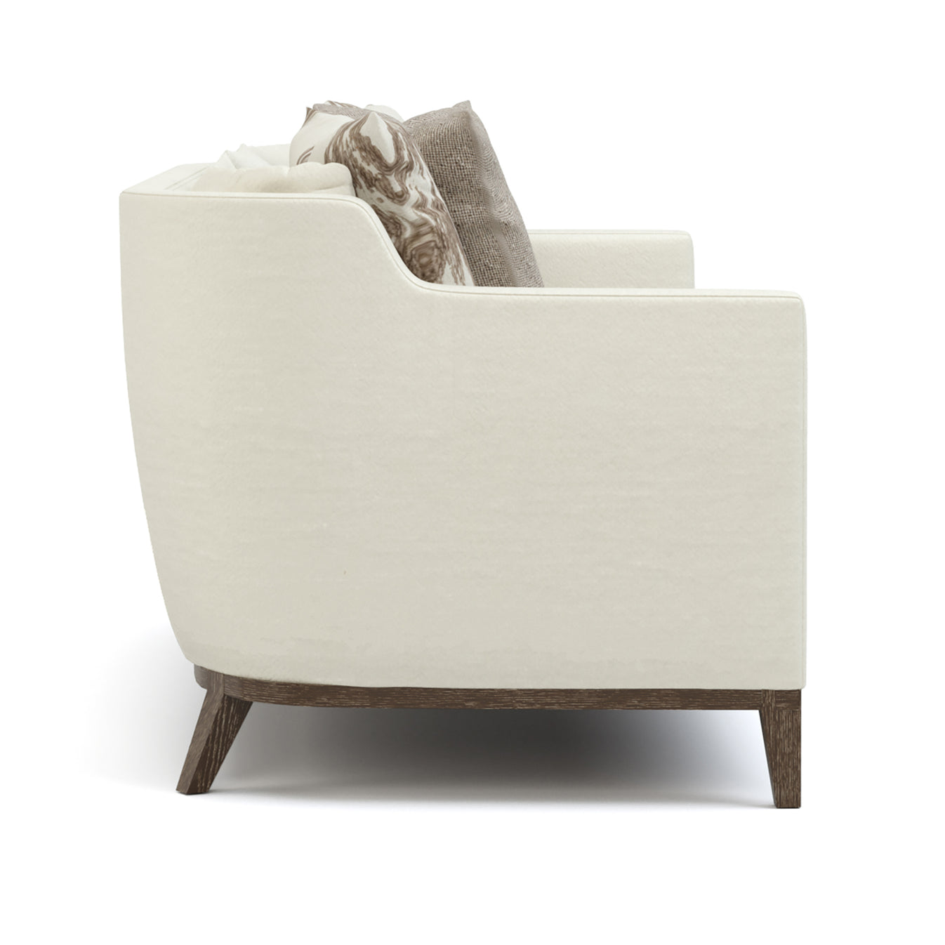 The Maidstone Sofa marries a refined, narrow track-arm design with irresistible comfort. The arms rise into a shallow wing and curve into the back, creating a low, sheltering profile that surrounds a roomy 78-inch-wide interior space. You’ll sink into its plush weltless seat cushions, back cushions that bend with the sofa’s curve, and four plump 22-inch throw pillows. The base includes a thin, radiused rail and flared rear legs. Available in any fine Stickley fabric or leather.