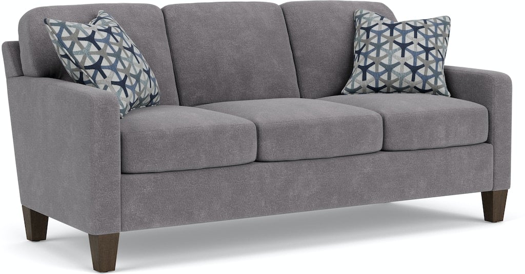 Cozy up with a loved one or claim it all for yourself with the Moxy sofa that lets you personalize details for the perfect look and feel. Straight track arms provide a clean look. Square tapered legs come in your choice of three distinct wood finishes-Florentine, Valencia, or Urban Renewal-to complement any decor. The removable square, inside seat cushion style offers you the flexibility to rotate for added longevity. Sink into the ideal level of support with your choice of our luxury or plush cushions. Complete the look and showcase your lifestyle with hundreds of different fabric choices, including high-performance and sustainable textiles. Superior frame construction and our patented C-Flex Blue Steel Springâ„¢ ensures your Moxy can be enjoyed for years to come.