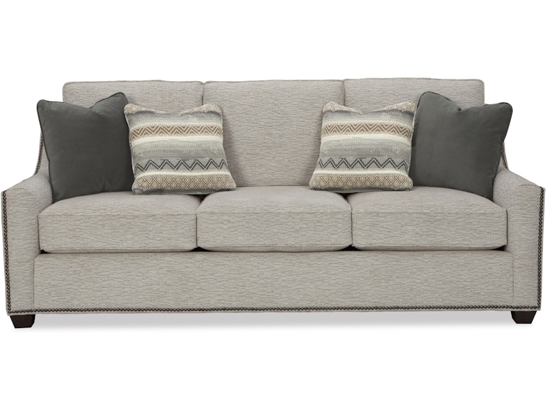 A showstopping style with so many lux details deserves a special place in your home. This sofa features loose box border backs and nail head trim that frames the piece on the arms and base. 2 pairs of toss pillows, low block feet and standard with our Comfort Soft seat cushions. Also available with a bench seat cushion using style number 702970. Matching loveseat, Chair 1/2, and Ottoman also available.