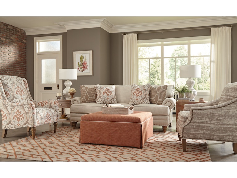 This classic silhouette is generously scaled in length but the seat depth is just a little shorter for those who prefer something less deep. It features plush attached backs with a box border treatment, as well Paula’s exclusive Down Blend seat cushions so it feels as comfortable as it looks! Handsome nail head trim accents the traditional Lawson arm as well as the base. Three unique turned legs on the front and 2 pairs of accent pillows finish the look.