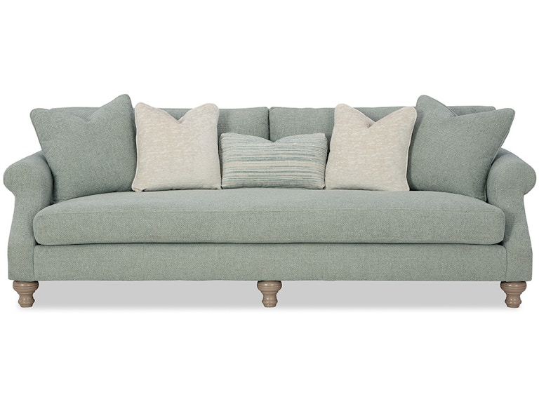 This sofa from the Paula Deen collection embodies the highest level of softness, comfort and luxury. Featuring deep seating, scattered Blend Down toss pillows and a bench-seat Blend Down cushion, this piece allows you to be enveloped in pure coziness. French seaming overall, turned legs and cut back roll arms complete the look. Also available are the matching loveseat, chair 1/2 and ottoman.