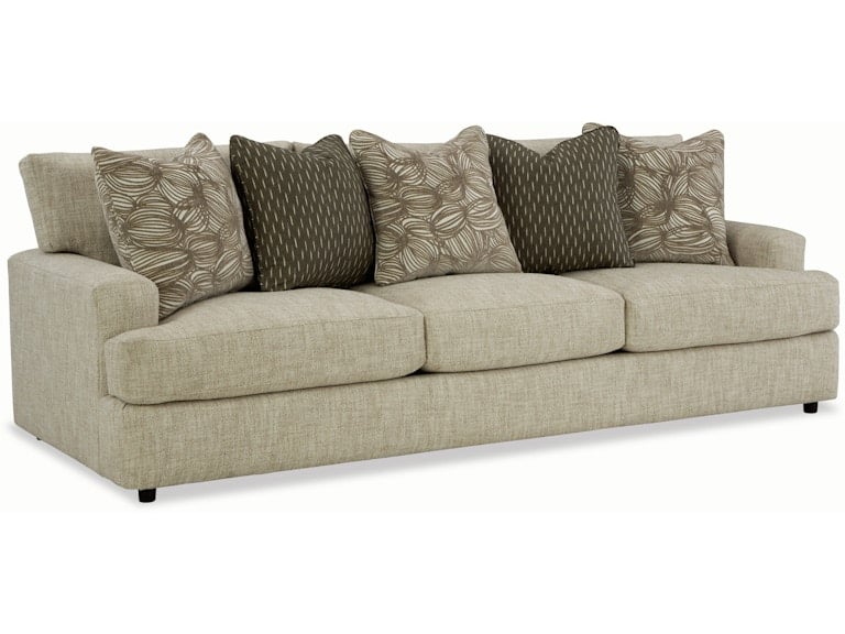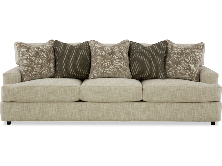 This cozy soft sofa from the Paula Deen Home collection checks all the boxes. Deep seated and comfortable, it features rounded track arms and rounded corners at the base for a sculpted and modern look. French seamed overall, loose back pillows, Paula’s exclusvie Down-Blend seat cushions, and 5 Down-Blend toss pillows are standard. At 100″ long, there is room for everyone! Also available are the matching loveseat, chair 1/2, ottoman, and sectional.