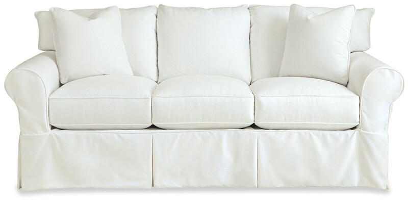 Simplicity and plush comfort are the reasons for this sofa’s mass appeal. Featuring a true removeable slipcover, that fits snugly with Velcro attachments in key areas, it can be ordered in any of our fabrics (including a few that are machine washable!) It features loose bed pillow backs and Super Soft Blend Down seat cushions and backs for enhanced comfort, as well as two Luxdown toss pillows for a welcoming touch. Sock arms and a relaxed waterfall skirt compete the familiar look of this casual and versatile sofa. You will love coming home to this fresh and inviting look. Also available in a 2 seat/2 back version and a bench seat/2 back version. Also available are the matching loveseat, chair, ottoman, and sleeper sofa.