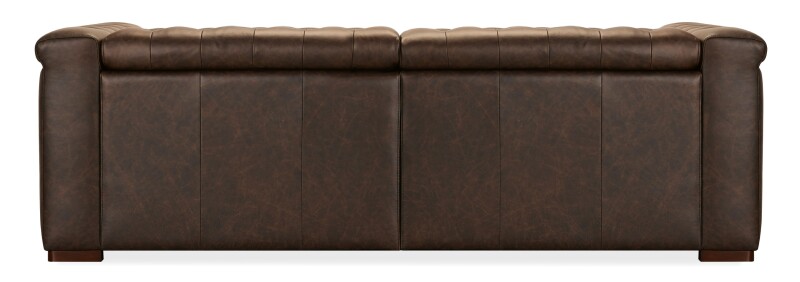 The Savion Deux LAF/RAF 2 over 2 Sofa is designed for luxury and comfort, featuring power reclining seats at each end and power headrests on both seats. Upholstered in West Saddlewood Top Grain leather, this sofa is adorned with classic chesterfield tufting and copper-toned nail trim, along with a dark wood finish. The high-density foam core and polyester-wrapped cushions offer plush seating, while the sophisticated design is enhanced by a seamless reclining mechanism.