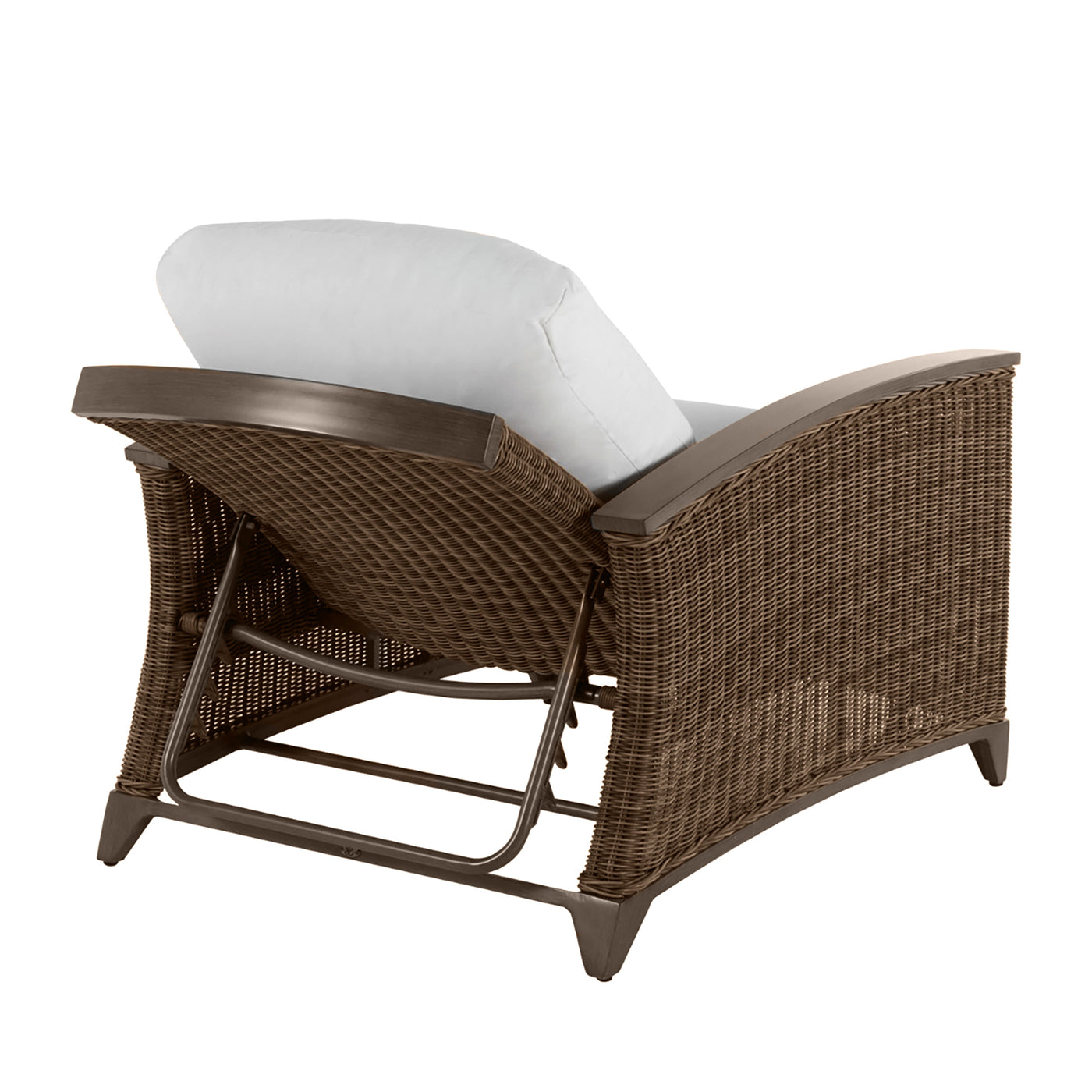 The Astoria Recliner Chair is an update of the classic outdoor wicker chair with the added bonus of it being able to recline! With sleek aluminum detailing and UV-resistant N-Dura™ resin wicker over a heavy-gauge aluminum frame, this chair is built to withstand the outdoor elements. The back reclines with a simple mechanism similar to chaise lounges. The chair features an antiqued application and fine braiding detail for the utmost in quality and style. Cloud-soft cushions promise years of outdoor relaxation.