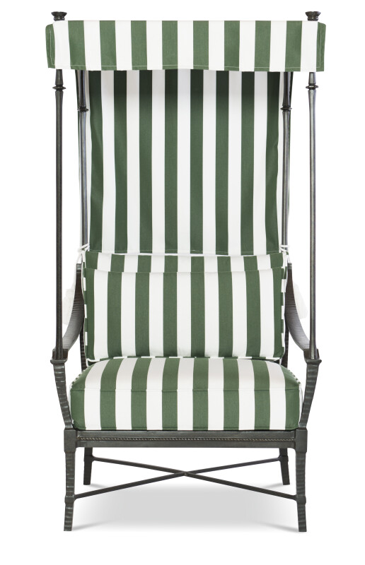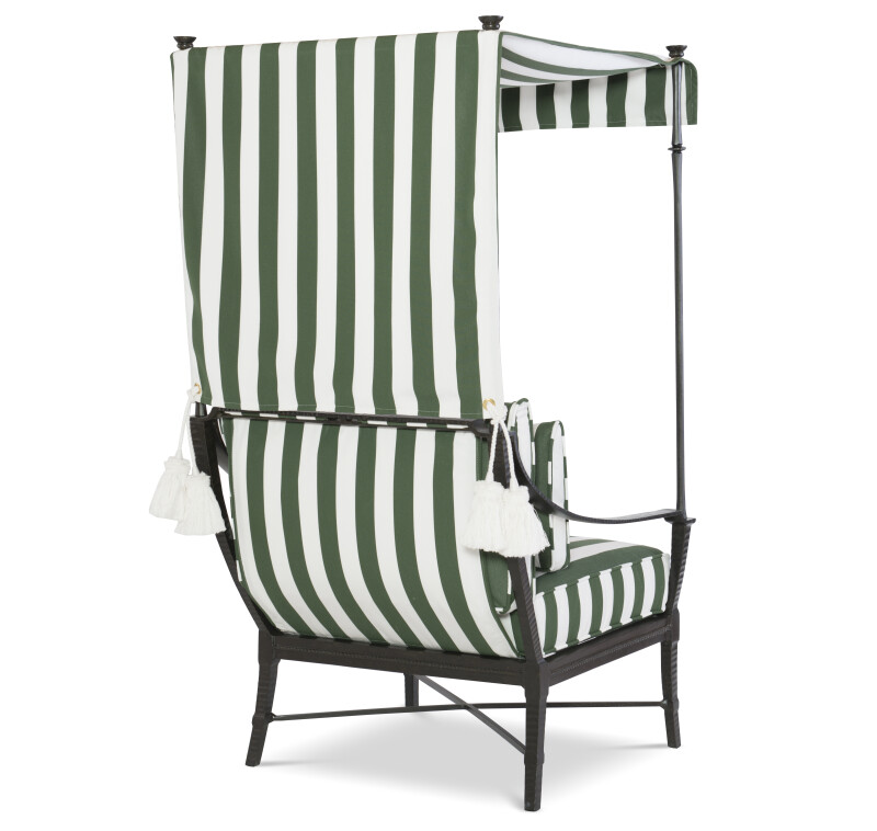 This functional and attractive Chair canopy is a design element that compliments our lounge chair to add a sense of royalty. The fabric is swagged to create a Gondola-style design with decorative trim details.