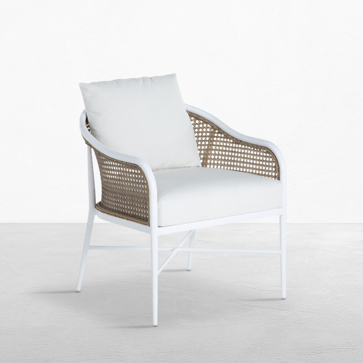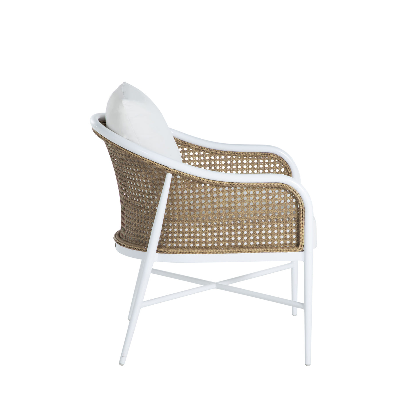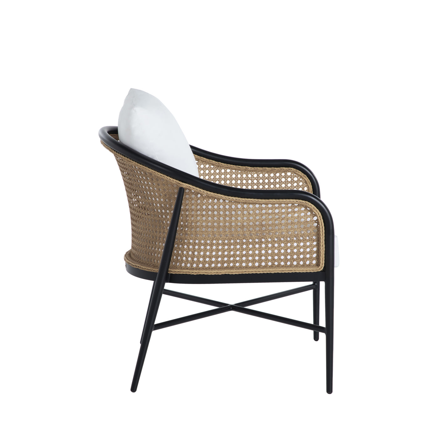 Introducing the Havana Euro Lounge, which draws inspiration from the traditional open cane weaving of old Havana, reimagined with contemporary materials for exceptional durability. The lounge chair features all-weather, Natural N-Dura™ resin wicker, which replicates the rich texture and timeless appeal of authentic cane weaving. Paired with a polished aluminum frame, the chair boasts a gently curved silhouette, reminiscent of mid-century modern design, ensuring both style and comfort. The cushions, crafted with high-performance outdoor fabric, offer plush support and are resistant to fading, moisture, and mildew. This makes the Havana Euro Lounge an ideal choice for various outdoor settings, from casual chat sets on the patio to outdoor dining.