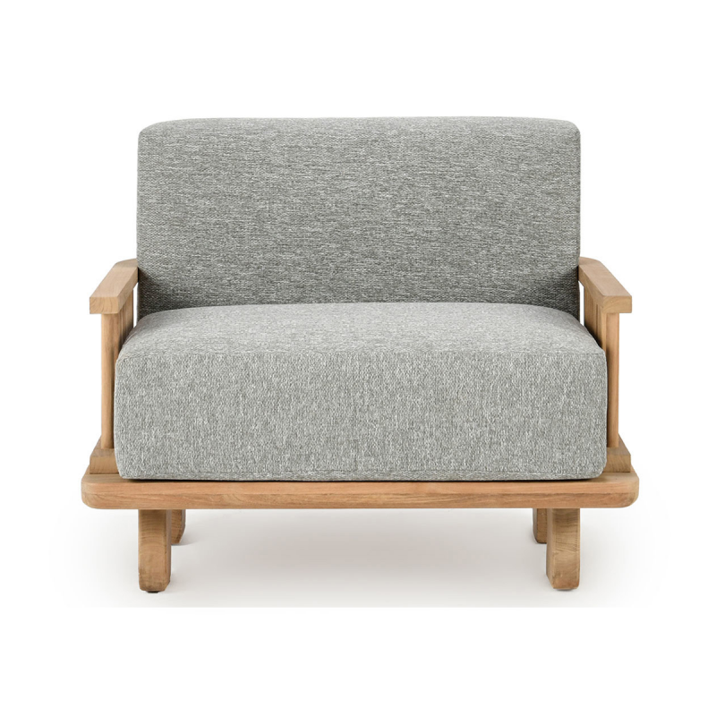 Ground your outdoor space with the organic charm of the Hudson Accent Chair. Crafted from Grade-A Teak Wood, weather-resistant Olefin cushions in Gray, and finished naturally to highlight its warm tones, this chair balance durability and design, creating a serene seating for every outdoor occasion.