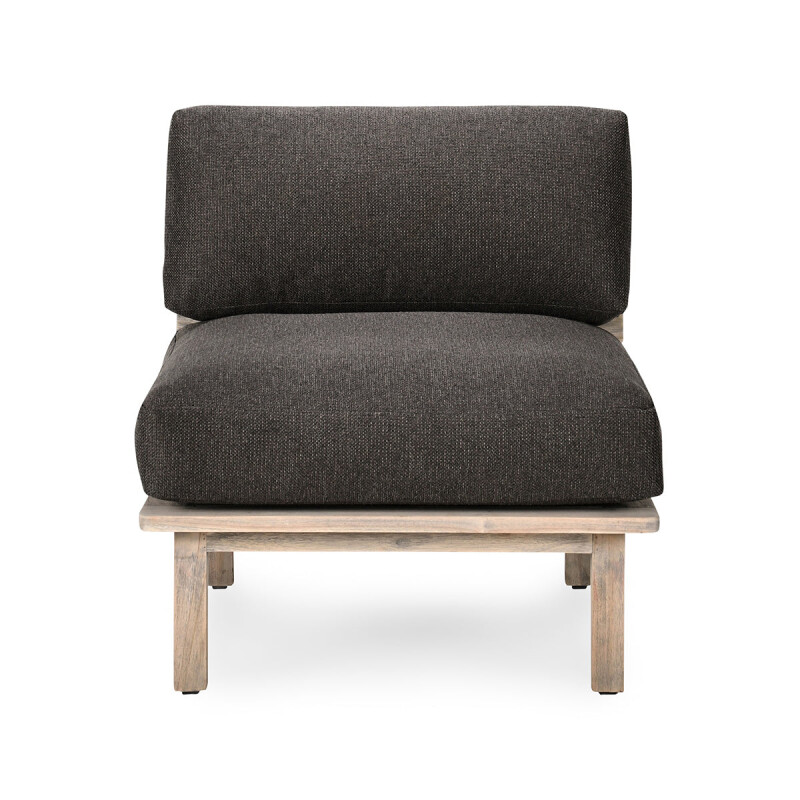 The Podium Outdoor Armless Chair in dark gray is a refined addition to any outdoor living space. Designed with a sturdy wood frame, this chair combines durability with minimalist elegance. The removable cushions provide effortless versatility, allowing you to maintain a fresh and tailored look while ensuring superior comfort. Ideal for patios, gardens, or poolside lounging, the Podium Outdoor Armless Chair brings modern sophistication and functionality together. Crafted to withstand the elements, it’s the perfect seating solution for creating a stylish and inviting outdoor retreat. Elevate your outdoor space with the timeless appeal of the Podium Outdoor Armless Chair.