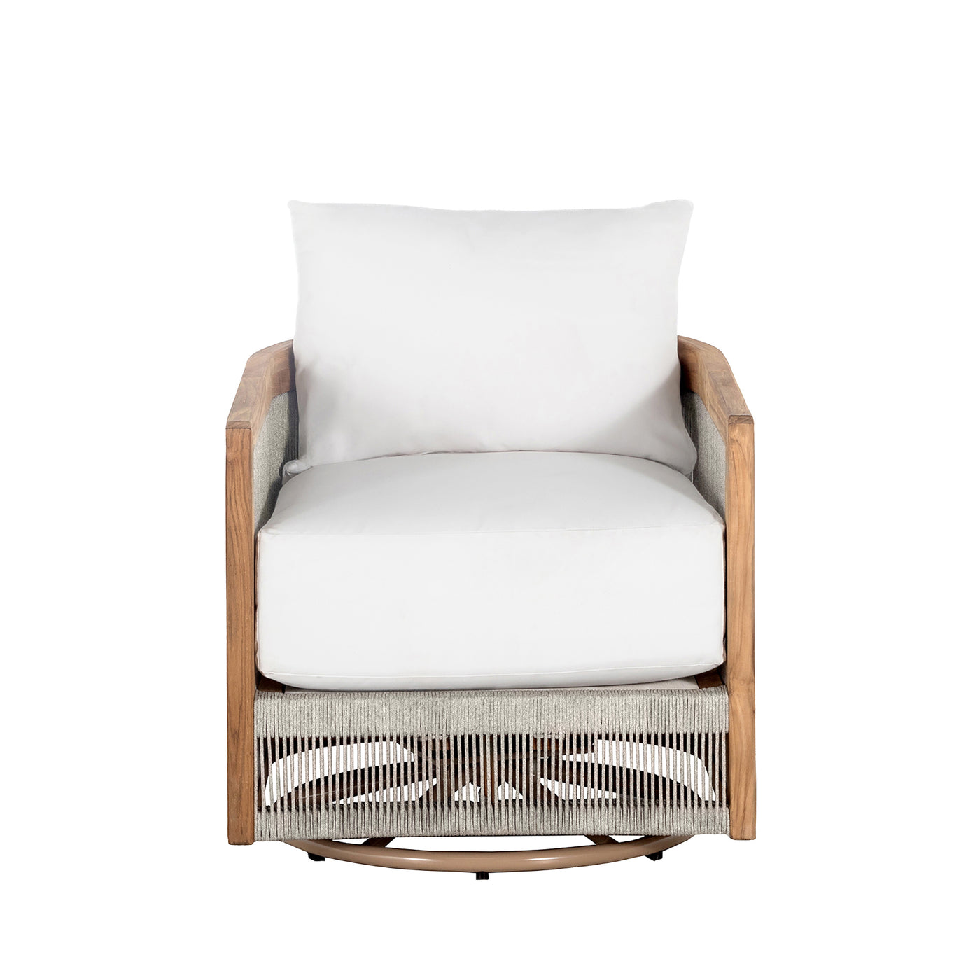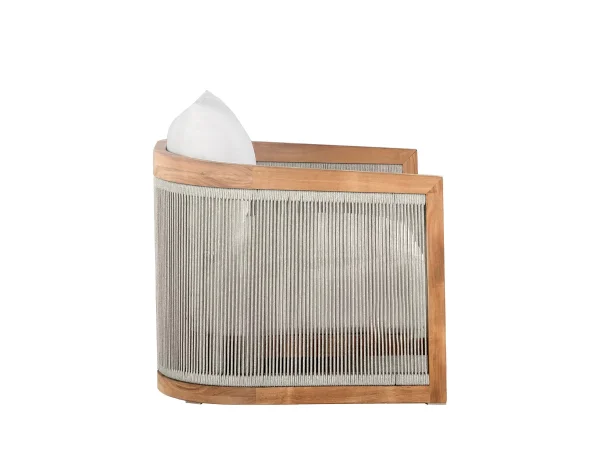 Introducing the Avalon Swivel Lounge, a luxurious blend of teak and olefin rope that combines style, durability, and motion. This distinctive lounge features a barrel back design that nearly extends to the ground, with an Indonesian natural teak frame providing both comfort and elegance. The woven olefin rope, known for its resistance to moisture, UV rays, and mildew, ensures lasting durability, making it perfect for outdoor use. What sets the Avalon Swivel Lounge apart is its ability to swivel smoothly from side to side, offering a dynamic seating experience. The low back design adds visual intrigue as the teak frame nearly converges at the back, while the plush cushions, with the back cushion sitting higher than the lounge’s back, provide enhanced comfort and support. Elevate your outdoor relaxation with the Avalon Swivel Lounge, where timeless design meets unparalleled comfort and mobility.