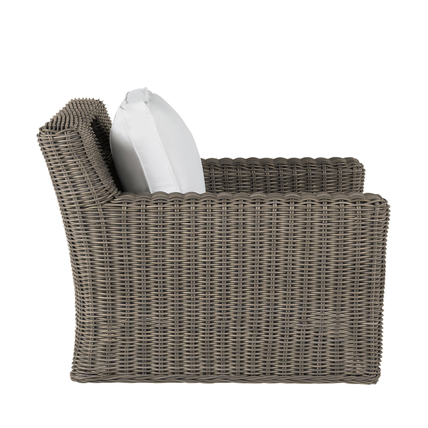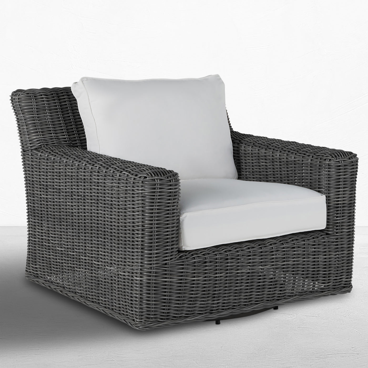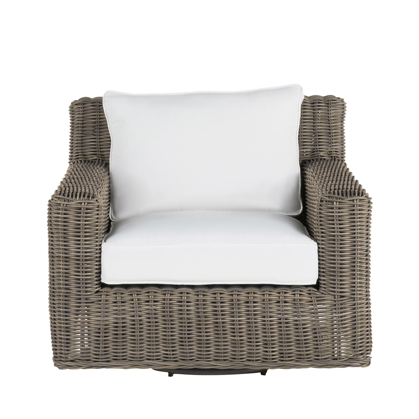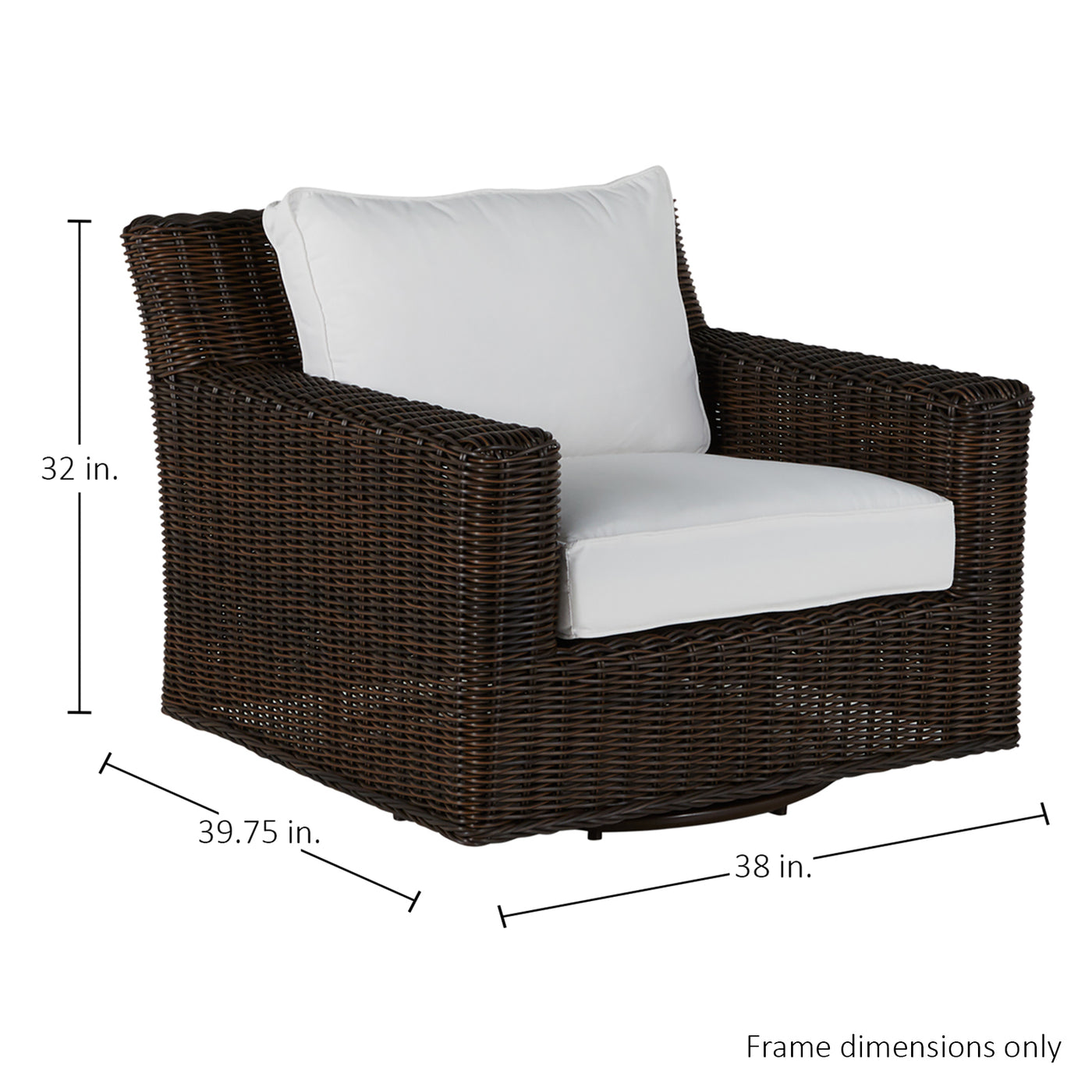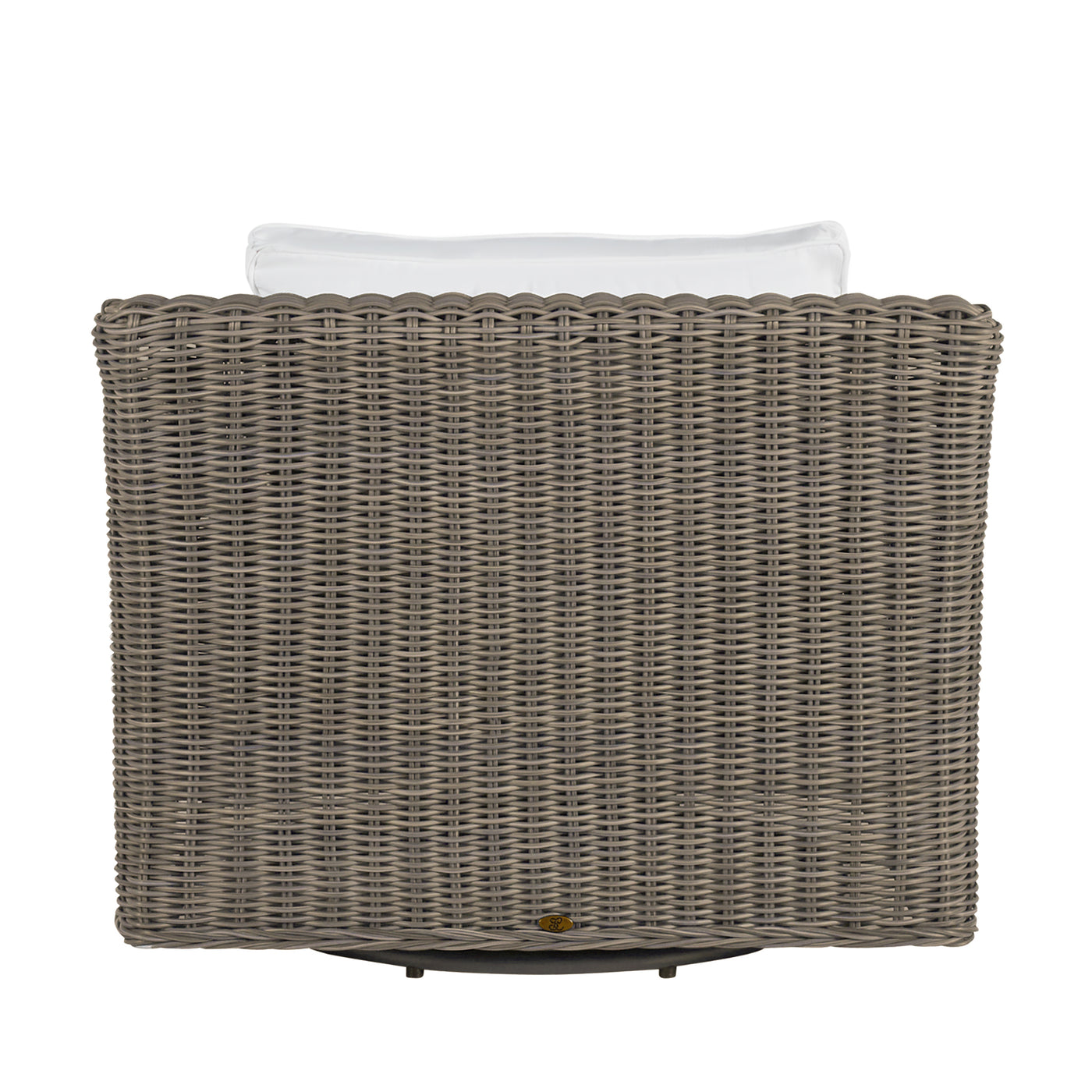 Sturdy, timeless, and built for year-round living, the Rustic Speaker Swivel Lounge brings beautiful elegance to any outdoor space. Crafted from weather and UV-resistant N-Dura™ resin wicker over a heavy-gauge aluminum frame, this oversized lounge chair has an antiqued finish and fine braiding detail for superior quality and style. The added luxury of the swivel base allows for effortless rotation and versatile positioning in any outdoor setting, allowing you to relax and sway side to side with ease.