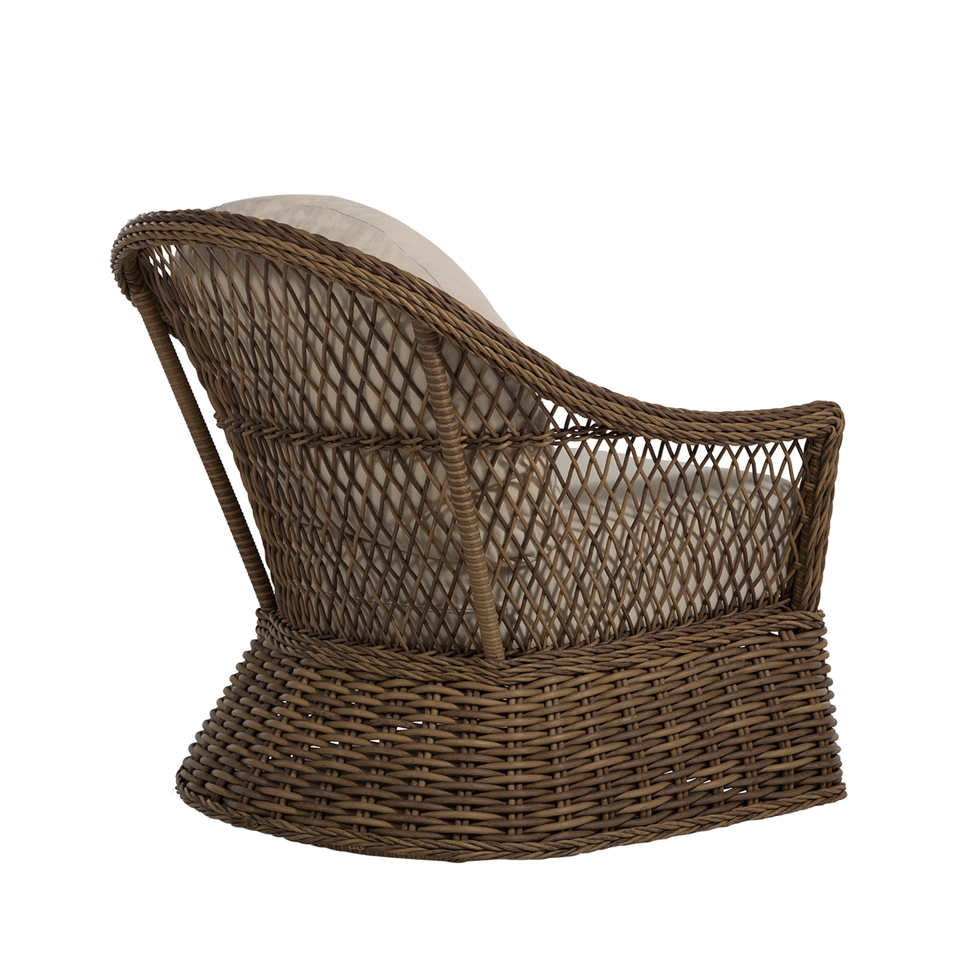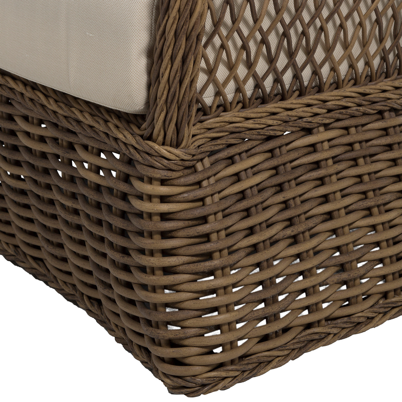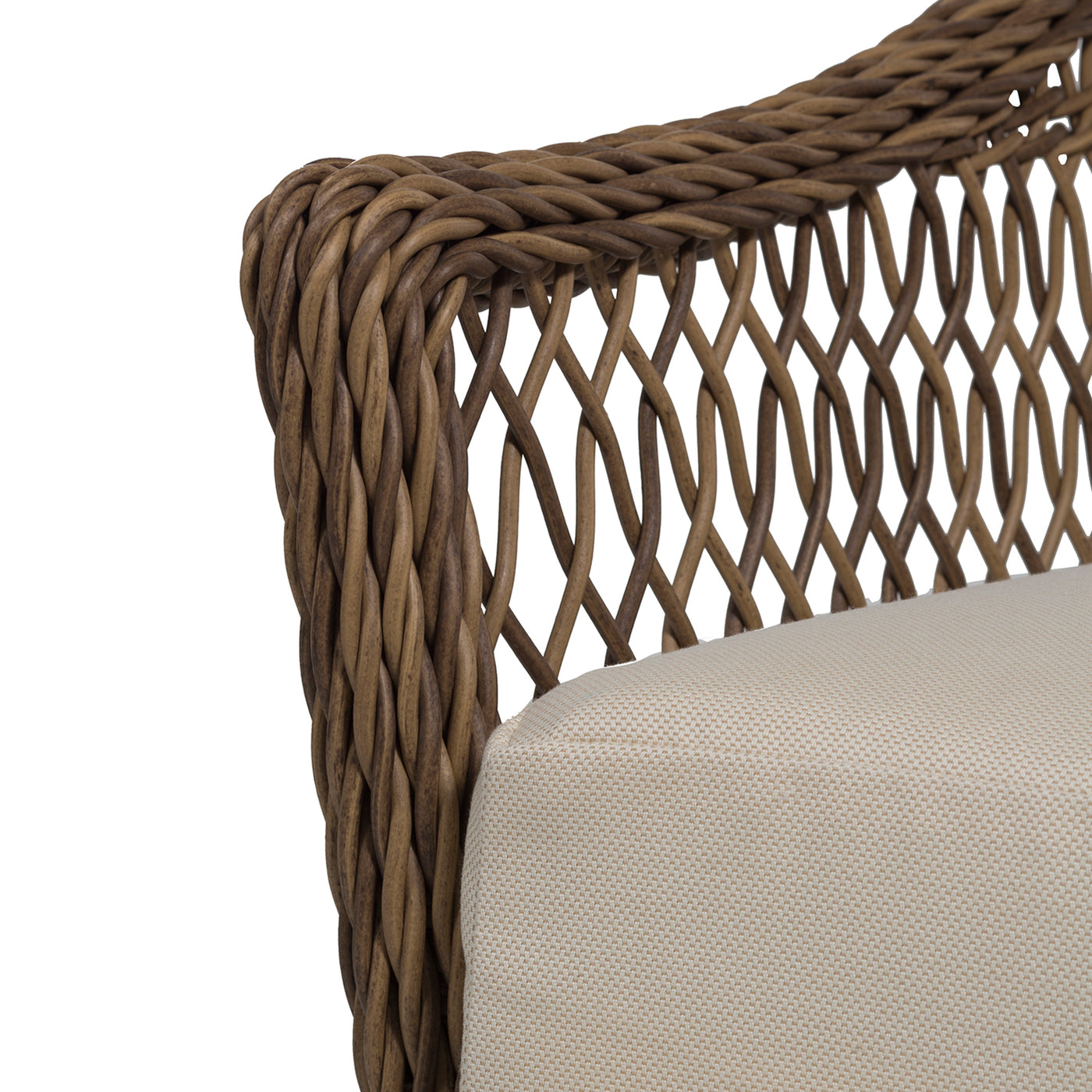Crafted from N-Dura™ resin wicker, the Soho Handwoven Lounge chair features an organic texture with an intricately twisted design and an open-diamond weave, creating a visually striking and inviting seating option. The UV-resistant wicker ensures vibrant color and structural integrity, resisting fading, cracking, and peeling for years of enjoyment. The generously proportioned design provides exceptional comfort, enhanced by the plush cushions specifically designed for outdoor use. Perfect for patios, gardens, or poolside retreats, the Soho Handwoven Lounge offers a perfect blend of bohemian charm and modern comfort for your outdoor space.