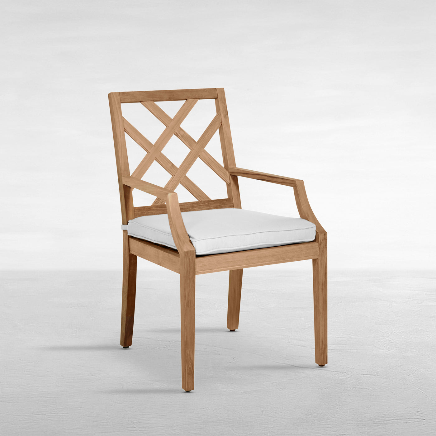 The Haley Teak Arm Chair is a classic. Made of durable, Indonesian teak, it features a traditional latticework back and finely detailed armrests. The simple elegance of the Haley Arm Chair makes it a perfect choice for any outdoor dining room. Embrace the lasting luxury of this Indonesian teak furniture, knowing that it hails from FSC-certified sources committed to ecological stewardship. This item is designed to be enjoyed either with or without a cushion. Please designate your choice in the below “Select a Cushion” dropdown.