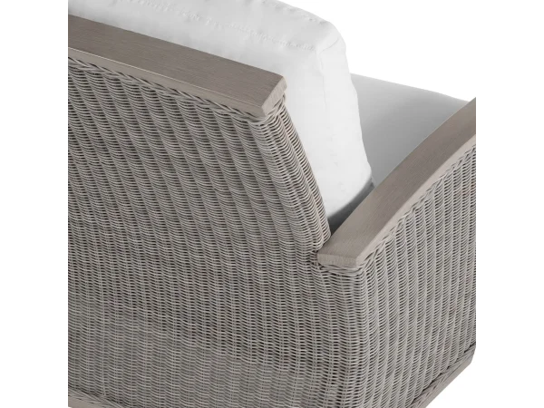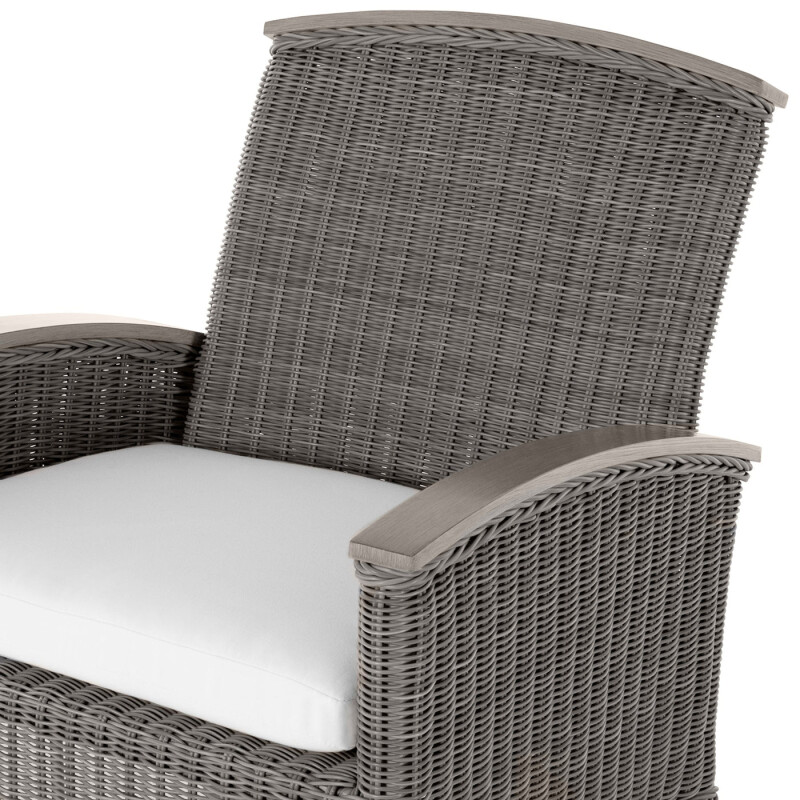 The Astoria Arm Chair features ultra-UV resistant N-Dura™ resin wicker handwoven over a durable aluminum frame. Its powder-coated finish enhances weather resistance and aesthetic appeal. The design offers comfort with high back support and armrests, complemented by a plush cushion. Perfect for outdoor settings, it combines timeless elegance with modern durability. This item is designed to be enjoyed either with or without a cushion. Please designate your choice in the below “Select a Cushion” dropdown. This item is available through our Quick Ship program in the specific frame finish, fabric option, cushion type, and fill shown. Quick Ship pieces are ready to ship within 72 hours, ensuring you receive your selection faster without compromising on quality.