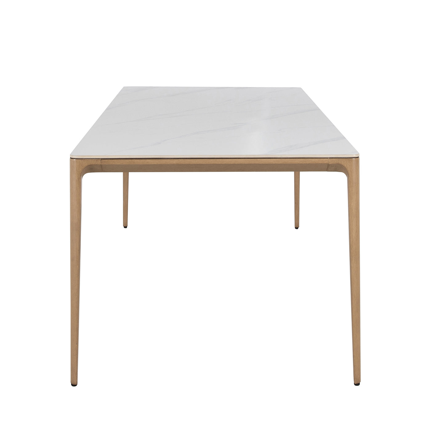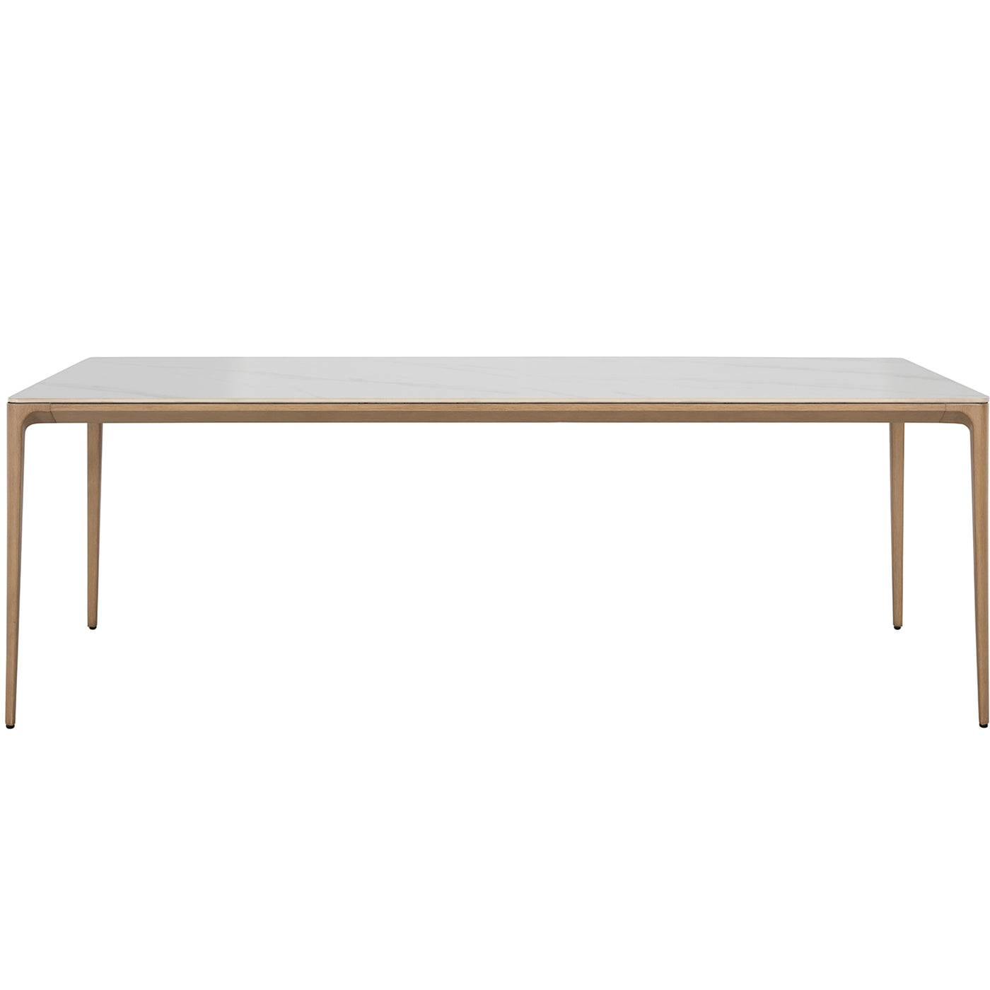Enhance your outdoor dining with the Palma Dining Table, featuring tapered and sleek aluminum legs in a natural finish and a durable sintered stone top that mimics marble. The sintered stone, known for its exceptional durability, resembles marble with unique veining that varies piece by piece. It is an excellent countertop material, resistant to hot and cold items, and impervious to water rings or oil-based spills due to its non-porous nature. This flat, matte surface is not only strong and scratch-resistant but also requires no maintenance, making it perfect for hot and cold weather conditions. Offering exceptional value with its blend of style and resilience, the Palma Dining Table is ideal for any outdoor gathering of 6-8 people, ensuring long-lasting beauty and performance.