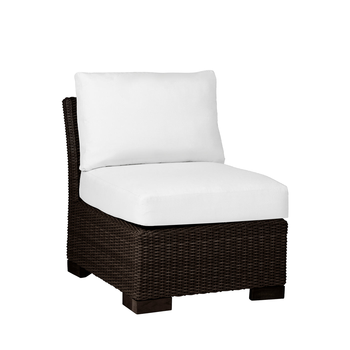 Summer Classics offers outdoor sectional seating designed to fit any space. The Club Woven Slipper Chair combines with other pieces in the collection to form a loveseat or sofa; or use the slipper chair for comfortable stand-alone seating. Crafted from our durable N-Dura™ resin wicker, this corner sectional piece offers unparalleled UV resistance, ensuring vibrant color and structural integrity even after 4,000 hours of rigorous lab testing. The multi-tonal wicker resists fading, cracking, and peeling, promising longevity and aesthetic appeal far superior to traditional wicker.