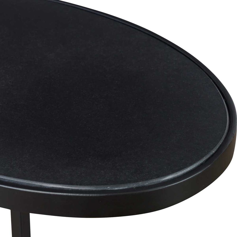 Showcasing a clean-lined design, this accent table features an inset oval-shaped honed white marble top, supported with a hand forged iron base finished in antiqued brushed gold. True to the nature of natural materials, each piece will have unique marbling and veining throughout.