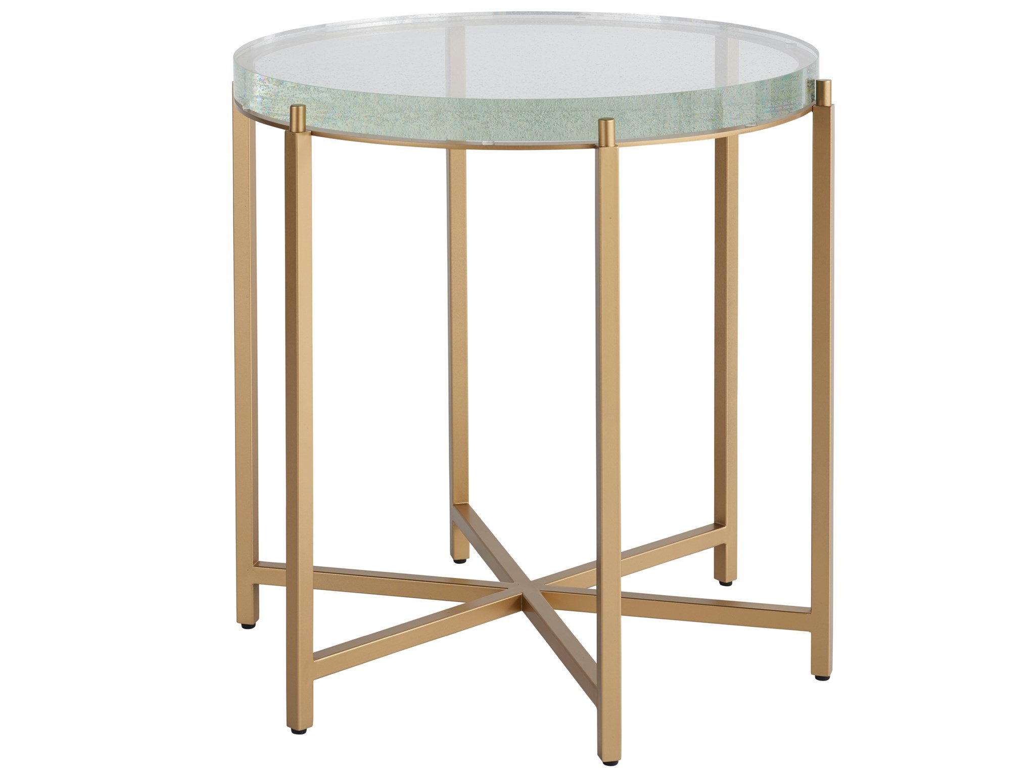 Sophisticated bubble glass sits atop six, soft gold legs to complete the End Table, which is a delightful punctuation to a favorite sofa or side