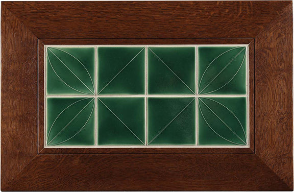 A symmetrical and unique configuration of North Prairie Tileworks inset tiles sits atop a classic table sized just right for any room. Pinned mortise-and-tenon joinery and spline detail on each corner are a nod to traditional Arts and Crafts styling. Cherry.