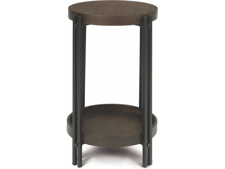 Clean lines and handcrafted details bring a timeless look to living spaces with the Prairie chairside table. Sized perfectly for intimate gathering areas, this table has plenty of room to hold your favorite book and keep your cup of coffee within reach. An open lower tray-style shelf offers an additional area for storage or to display decor. Design details include sleek metal legs in a gunmetal finish and walnut veneer surfaces finished in a dark, rich tone. Rough-sawn edge banding completes the look with added texture and character.