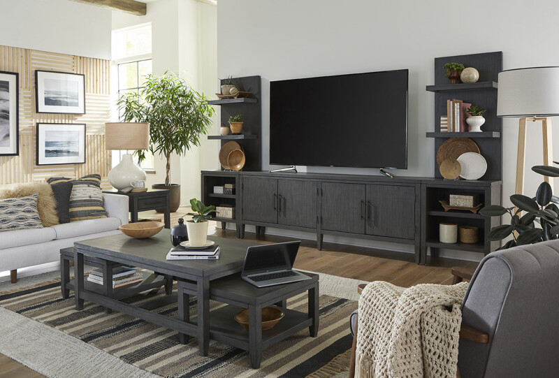 Preston offers a clean, transitional style in a gorgeous Urbane Grey finish with generously sized contemporary bar pull hardware.