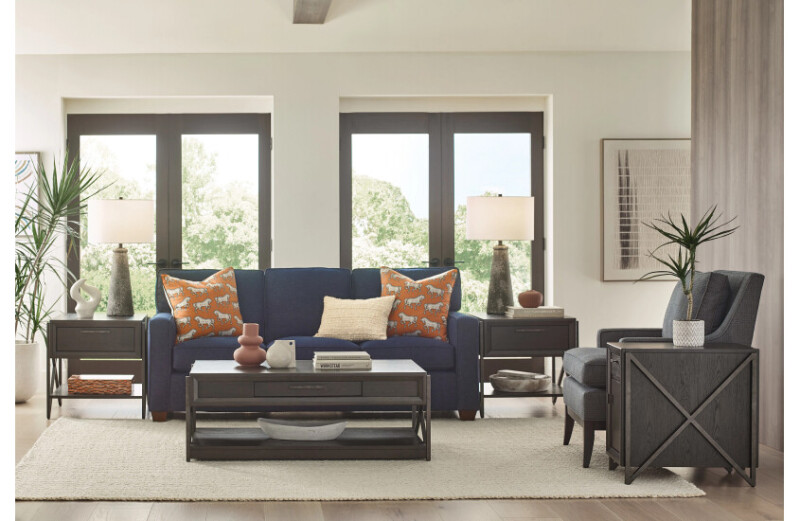 Add style and function to your living space with this table from our Simon collection. Beautifully crafted of white oak veneers and select hardwoods in a French Press finish this table also comes equipped with charging capabilities, one door and one drawer for ample storage.