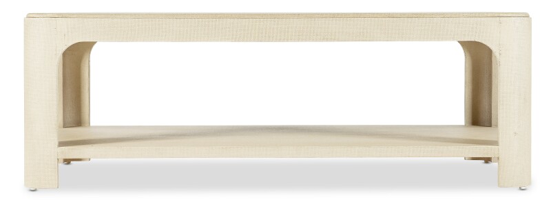 The Archives Raffia Rectangle Cocktail Table brings a coastal-inspired elegance to any living room. Wrapped in raffia with woven-cane elements, the table features a refined Flax finish that adds texture and depth. With its sturdy wooden frame and fixed lower shelf, this rectangular coffee table blends functional storage with stylish design. Ideal for interiors that value timeless materials and a sense of natural luxury, this piece is perfect for creating a relaxed, yet sophisticated atmosphere.