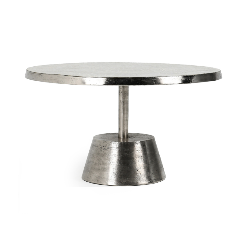 The Ariel Coffee Table is a stunning centerpiece that blends modern design with industrial sophistication. Featuring a sleek, polished metal top and a sturdy conical base, this table reflects elegance and durability. Its reflective finish adds a touch of contemporary glamour, making it a perfect addition to living spaces that embrace bold, modern aesthetics.