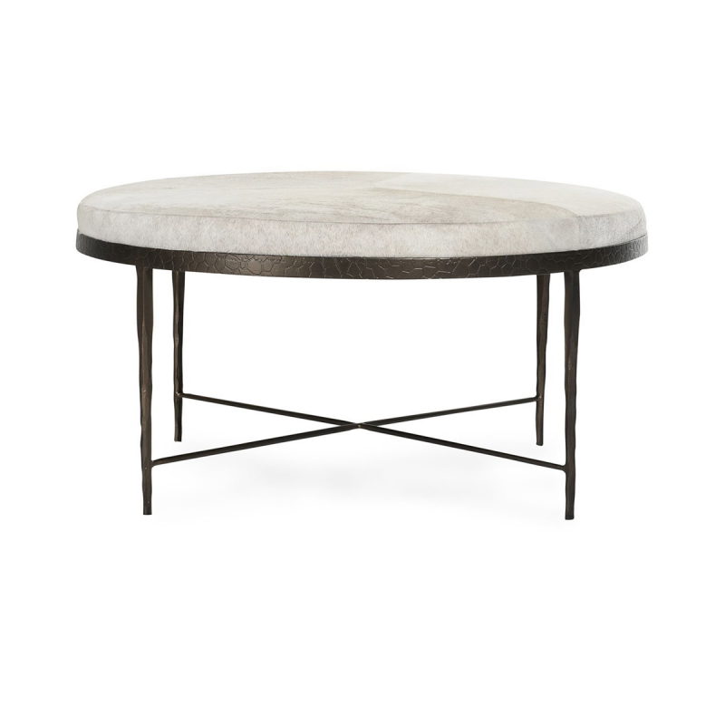 The Bose Coffee Table adds a touch of modern sophistication with its unique hair-on-hide tabletop. The natural texture of the hide creates a luxurious and tactile surface, while the slim bronze metal frame offers a sleek and minimalist contrast. Perfect as a statement piece, this coffee table combines contemporary design with refined materials to elevate any living space.