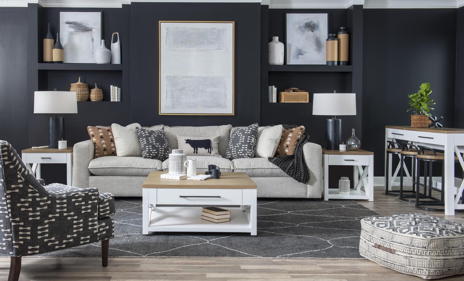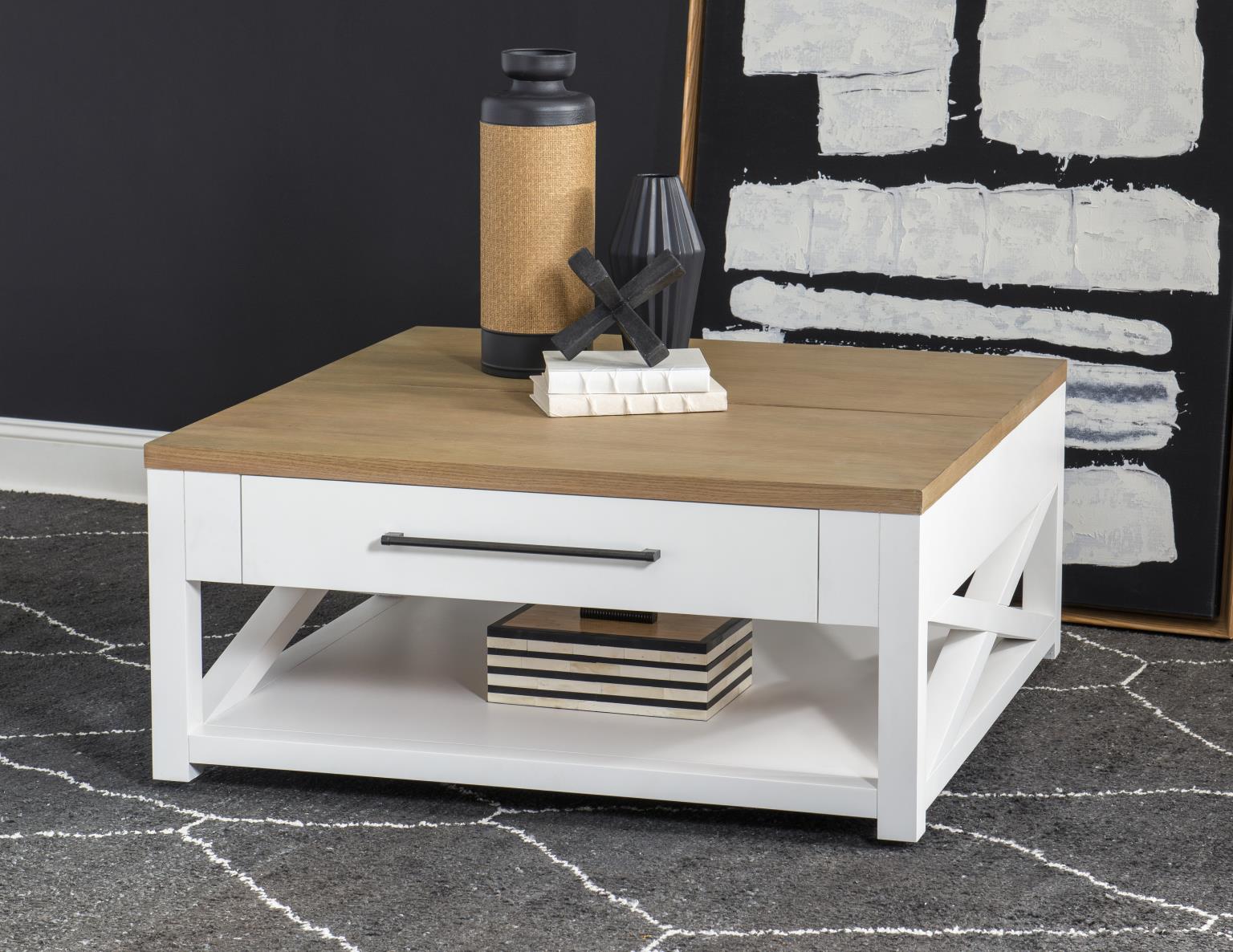 Tags: Cocktail & Coffee Tables, Harvest Oak Tops, Natural White Base, Aged Black Accents, Legacy Classic Furniture, White
