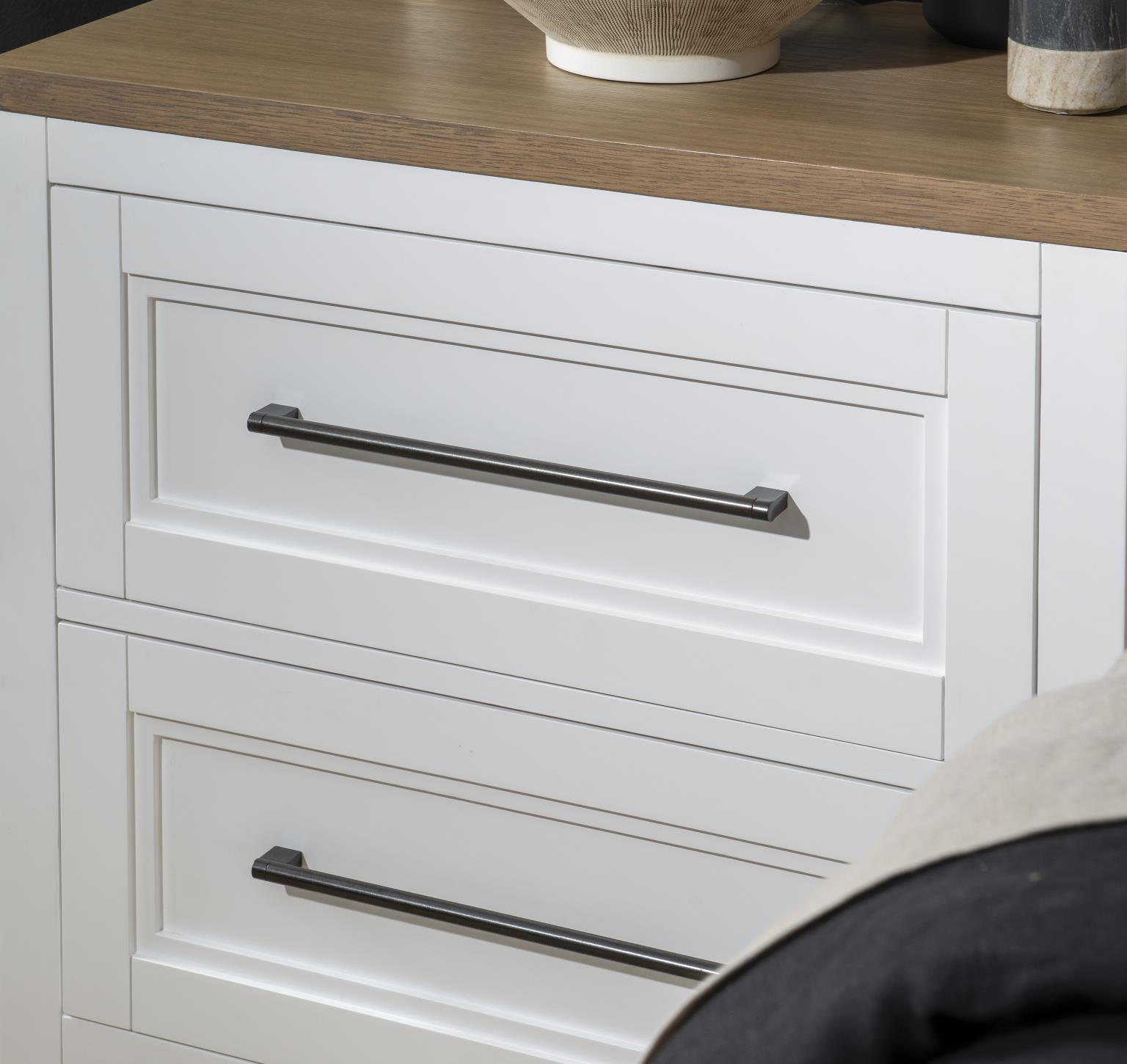 Finish | Harvest Oak Tops, Natural White Base, Aged Black Accents |