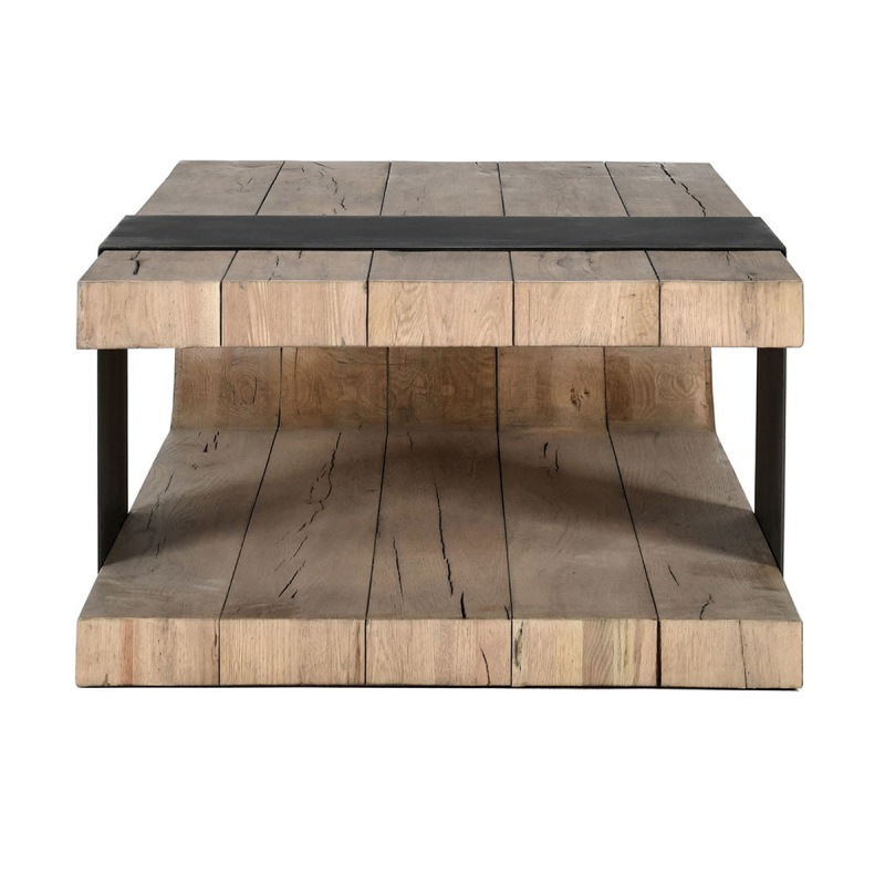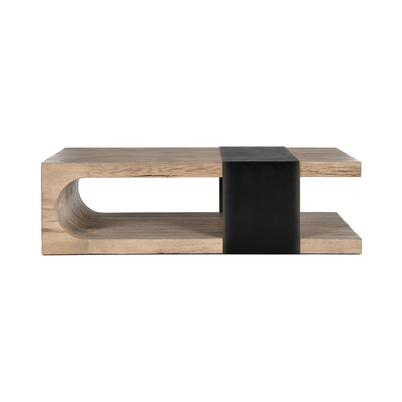 The Danica Reclaimed Occasional Set brings a striking modern presence to your living space. Constructed with FSC-certified reclaimed oak wood, the set emphasizes sustainable elegance. Its innovative design showcases open shelving paired with a bold black accent band, providing both visual appeal and practical functionality. The collection’s blend of natural materials and contemporary style makes it a versatile and eco-conscious choice for modern interiors.