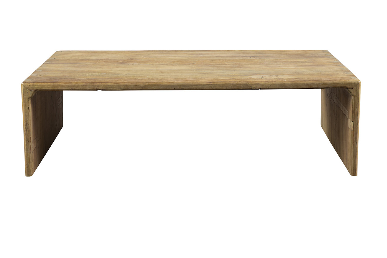 Grandly scaled, and featuring exaggerated dovetail joinery on the waterfall ends, this handsome solid elm table is striking on its own. However, if you and your friends or family gather on a sectional, add the smaller version as they nest together! Now everyone can reach their drinks, and the clear coat finish allows spills to be wiped easily.
