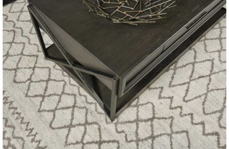 Featuring a casual contemporary design with a modern industrial feel, this drawer coffee table will blend well with many decor styles. It is equipped with one drawer,one shelf and casters for easy mobility.