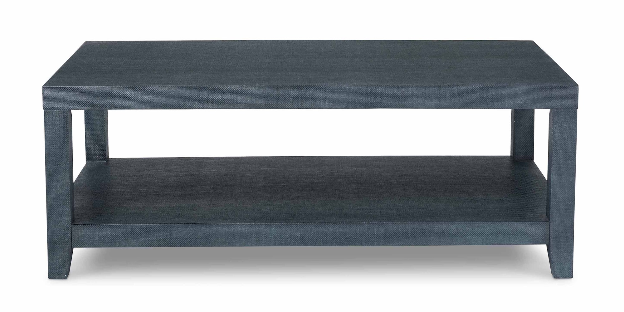 Oh what a feeling! The Ventura rectangular cocktail table finds its place right in the center of the room. A lightly textured raffia covers the entire table for visual interest and tactile pleasure. A sturdy lower shelf provides another level of storage and display. Choose from Pacific Blue or Sand Grey.