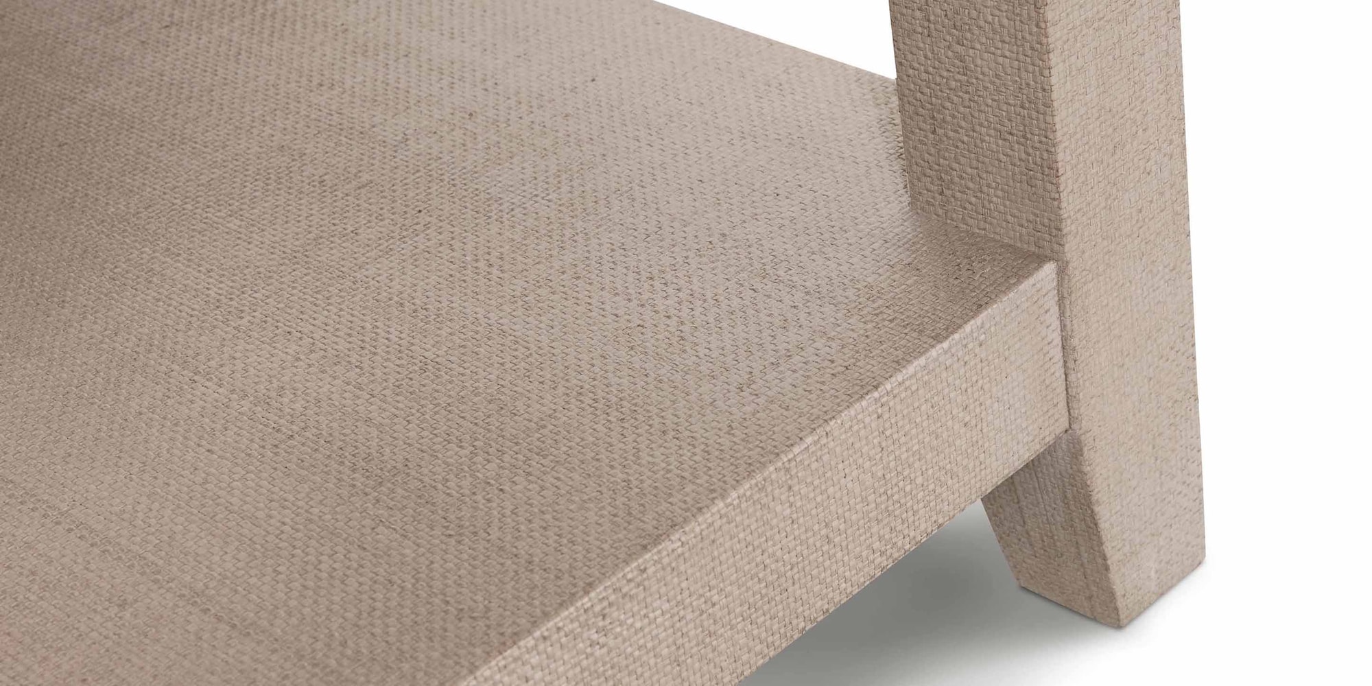 Oh what a feeling! The Ventura rectangular cocktail table finds its place right in the center of the room. A lightly textured raffia covers the entire table for visual interest and tactile pleasure. A sturdy lower shelf provides another level of storage and display.