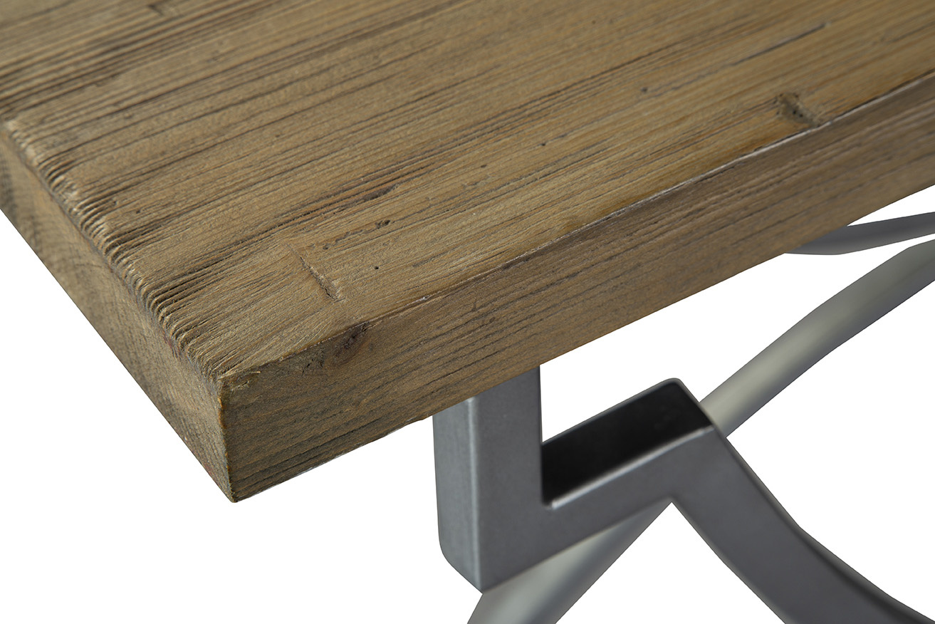 **Final Sale – All Items are sold as is, no returns unless damaged upon receipt. Juxtaposing an eye catching curved satin aluminum base with a top left in its natural honeyed tones, this console is certain to become a favorite accent in your home. The shaping of the base seems to defy gravity as it supports the solid pine top, ensuring that your guests will stop to marvel at its unique style.
