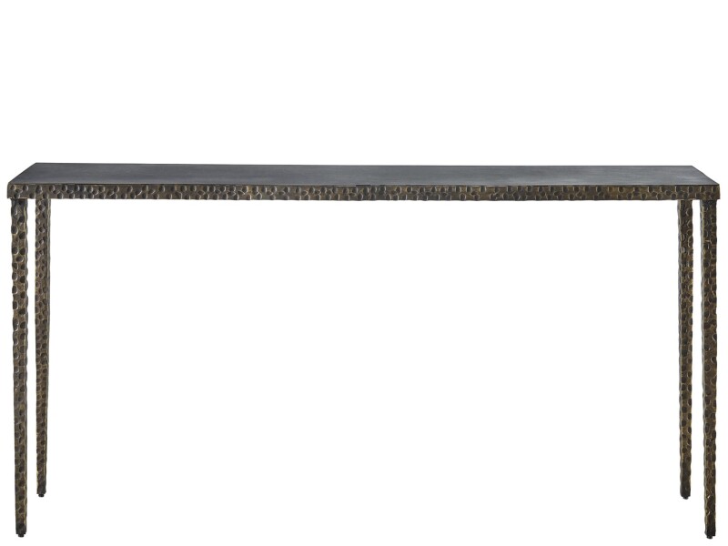 A sleek silhouette and a unique hammering detail define the Minimalist Console, a refined furnishing made richer by a matte metal finish.