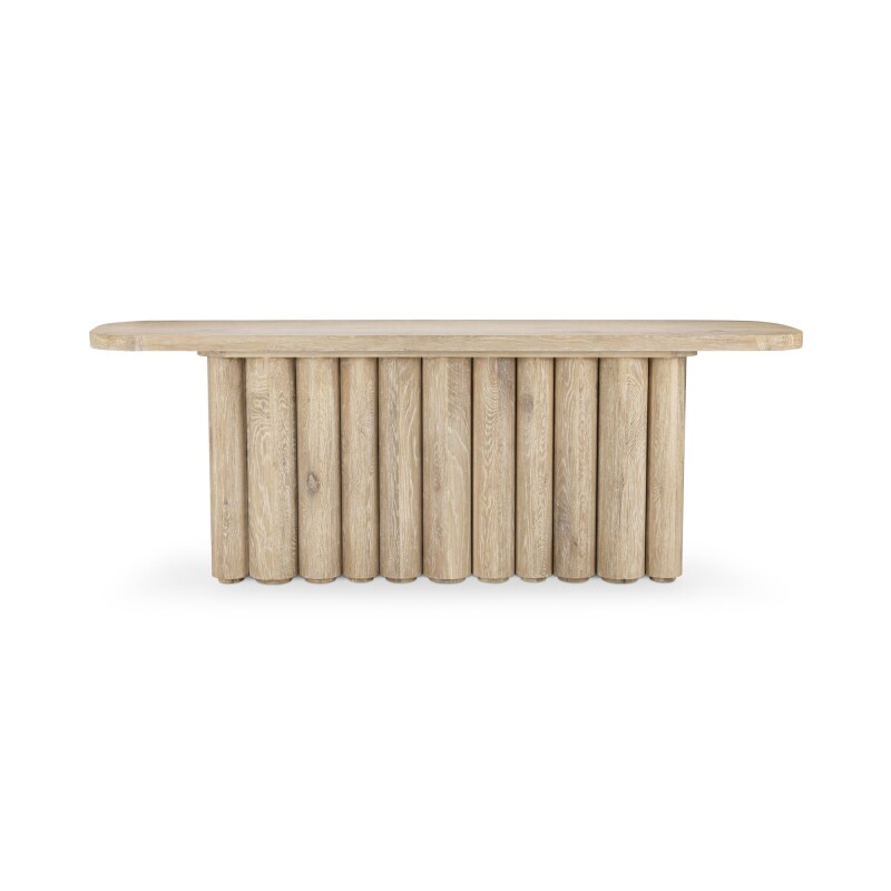 The Tiber Console Table is crafted from FSCĀ® Certified oak veneer, featuring round curves that introduce a soft, organic touch to its design. With its clean lines and natural wood finish, this table embodies the clarity of minimal design, offering refined yet relaxed elegance. Its timeless appeal and functionality make it the perfect addition to any modern entryway or living space. Available in Toasted Brown and Cream Washed.