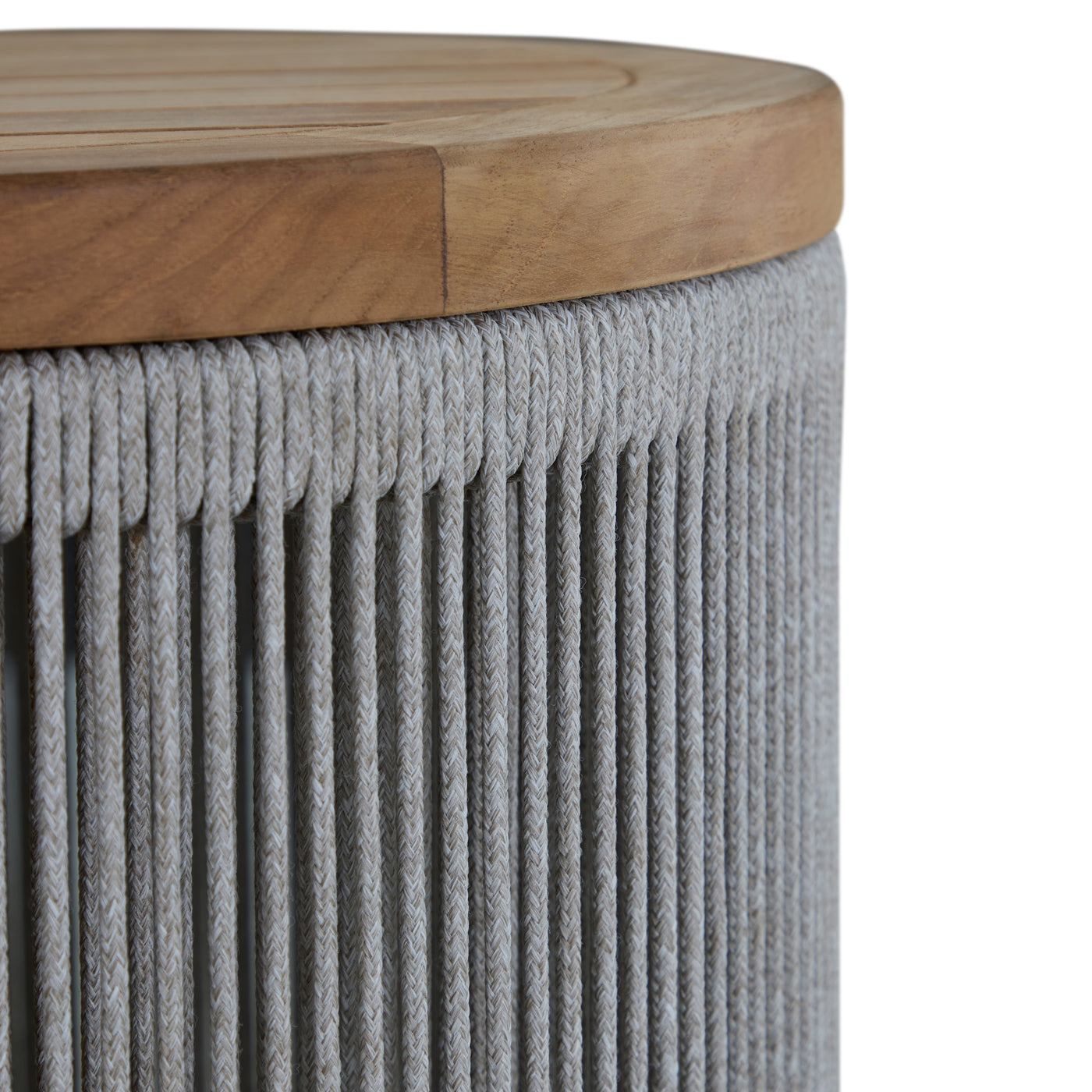 The Avalon End Table delivers the same elevated craftsmanship in a compact, versatile form. Made with responsibly sourced teak and encircled in tightly woven olefin rope, it adds rich texture and refined contrast to your outdoor setting. Its rounded profile and solid teak top make it ideal for pairing with lounge chairs or sofas, providing a functional surface that complements the collection’s cohesive, coastal-inspired design.