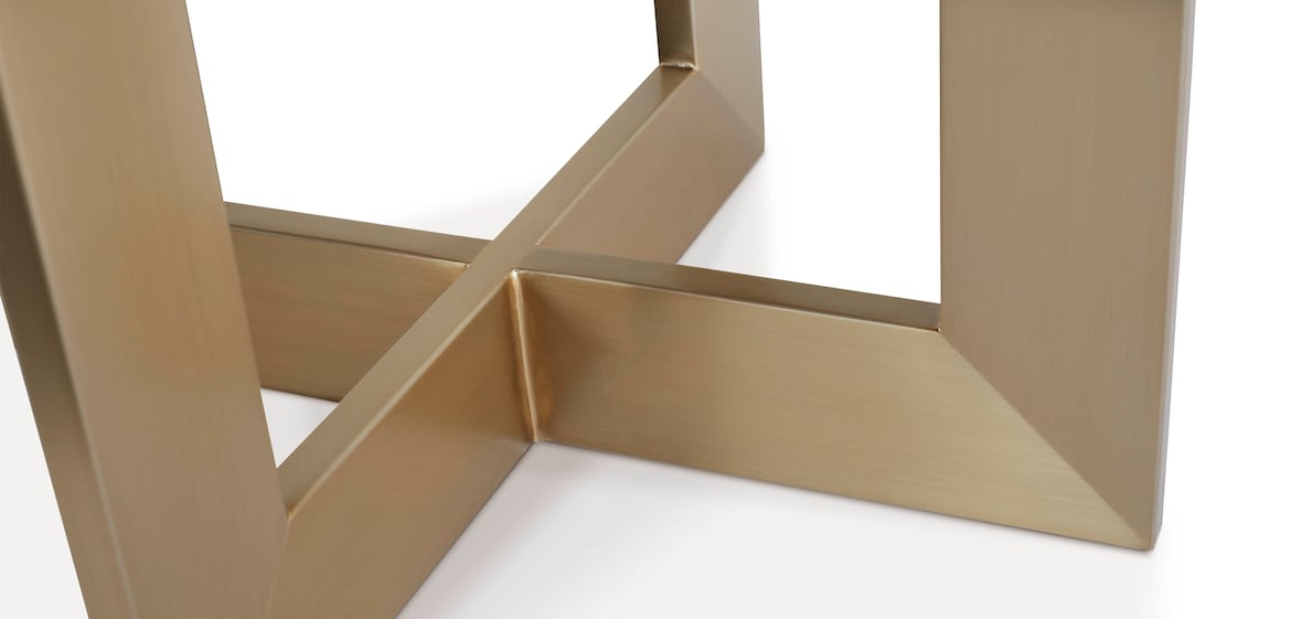 Practically speaking, the Benchmade Andover end table keeps your lamp, your drink, or your magazine close at hand. Yet it does so much more for your room. Its angular metal base brings a smooth, refined element in sleek champagne brass. The soft, natural beauty of solid American maple lends grace and handcrafted elegance. Hidden levelers ensure that the table sits sturdily on uneven surfaces. Select any Benchmade maple finish to make the table your own.