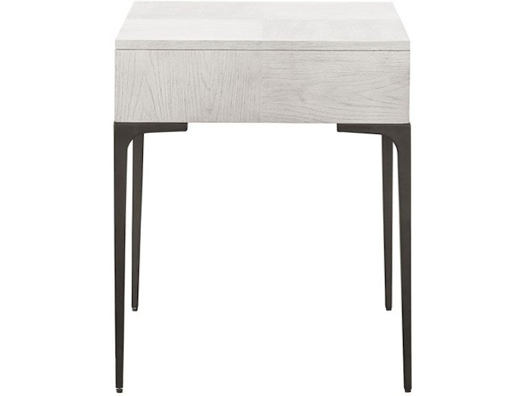 Slim and succinct, the Dahlia Drawer End Table provides a charming touch to any living space with its slender tapered legs, ring pull accent, and Dove finish.