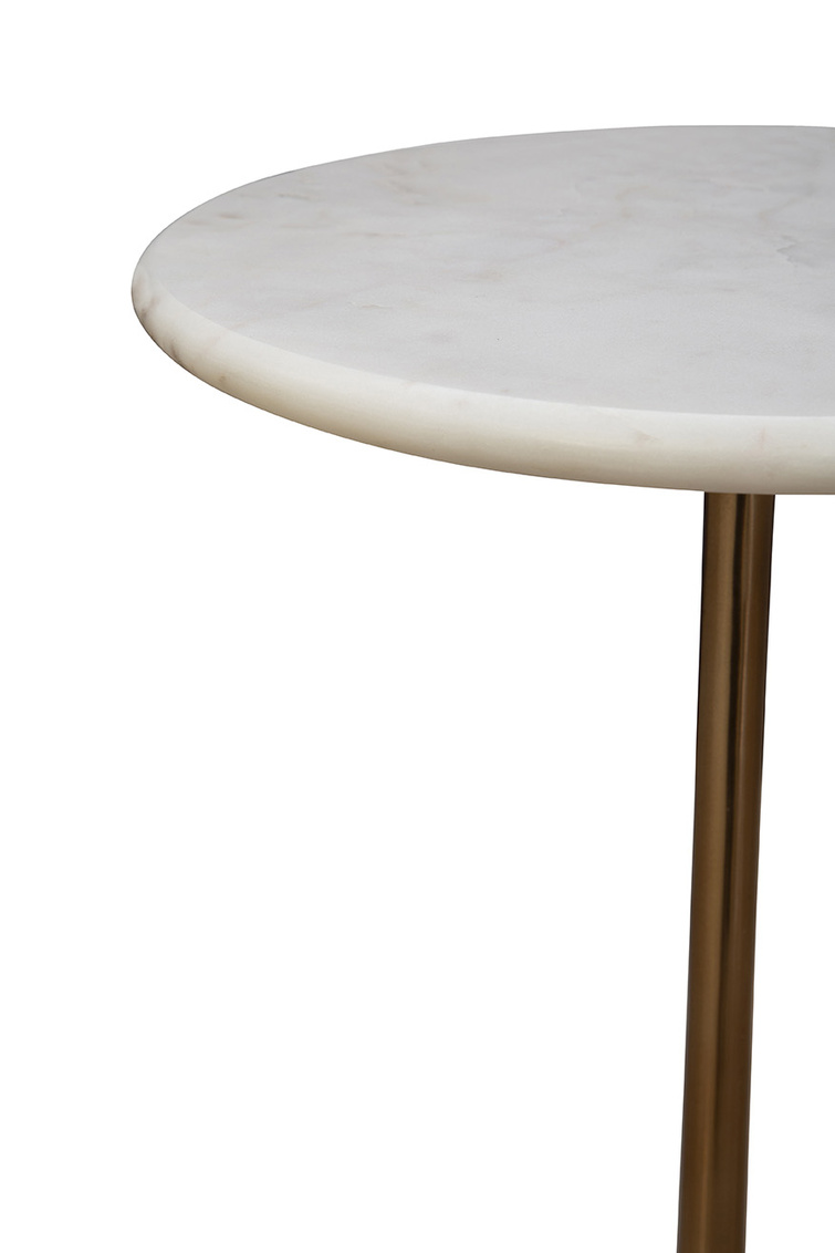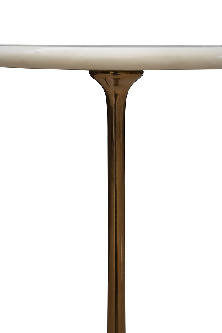 **Final Sale – All Items are sold as is, no returns unless damaged upon receipt. Introducing the Dustin Martini Table, a sleek yet striking piece for your living space. Featuring a circular white marble top paired with an aluminum base in a stunning gold finish, this table exudes an air of luxury. The unique design of the base, resembling a frozen fountain of gold, adds a touch of artistry and elegance to this contemporary piece.