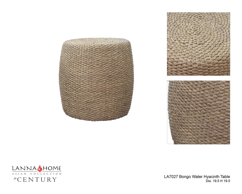 This nice bunching table is hand woven in Thailand from Water Hyacinth. Water Hyacinth is an aqua plant that grows in the slow moving rivers of Thailand. This plant grows so quickly and is so abundant that it is considered hyper-sustainable. The plants are harvested from the river and allowed to dry naturally. Then craftsmen weave these strands into this small table. As you can see in the pictures the weave is tight and strong making a sturdy and useful stool or table. The item is finished with a water based lacquer giving the weave a luster that will last for years.