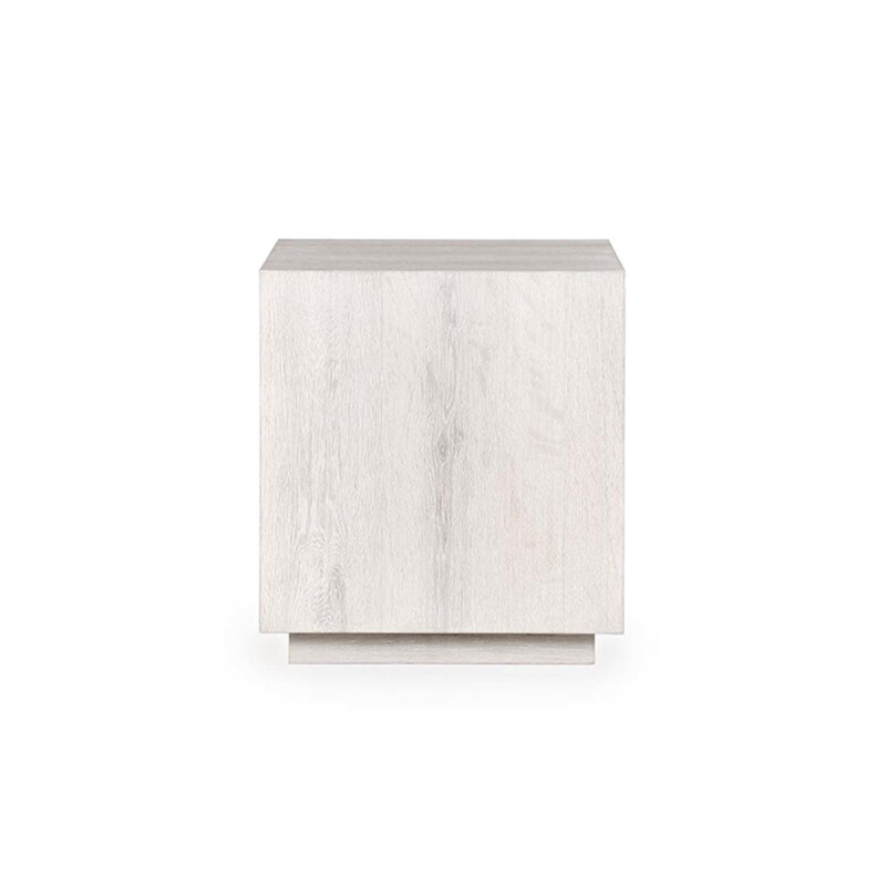 The Layne End Table features a sleek oak wood veneer construction with a stylish plinth base and a modern, minimalistic design. Its sophisticated yet simple lines and timeless appeal make it a versatile addition to any living room or lounge area.