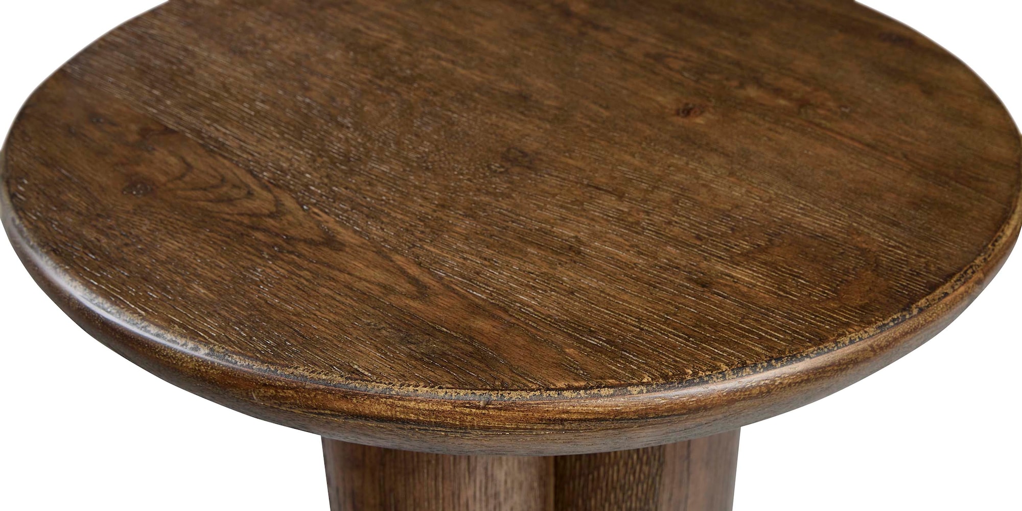 Rarely is there one table that can go everywhere and do almost everything, but the Ogden End Table is that table. Its slim, column-like base can accommodate a wide range of space limitations while its 24” round, disc-like top can serve you and your guests as needed. A stone composite is used for the elegantly hand-sculpted base and generously scaled, artfully distressed top. The table flaunts a finish redolent with the warm tones of caramelized sugar and bourbon, bringing a sweet yet modern sensibility to any space.